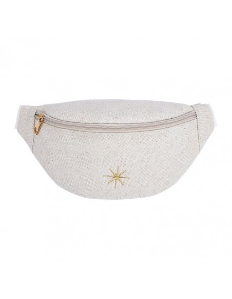 Sac banane ivoire femme avec broderie étoile dorée et sangle réglable. Format 34x15x8 cm, léger et tendance.