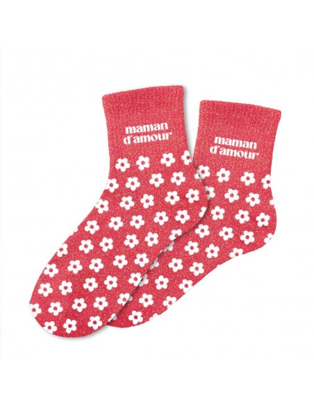 À la recherche d'un cadeau original pour votre maman ? Notre paire de chaussettes à paillettes "MAMAN D'AMOUR" est l'accessoire Mode idéal !