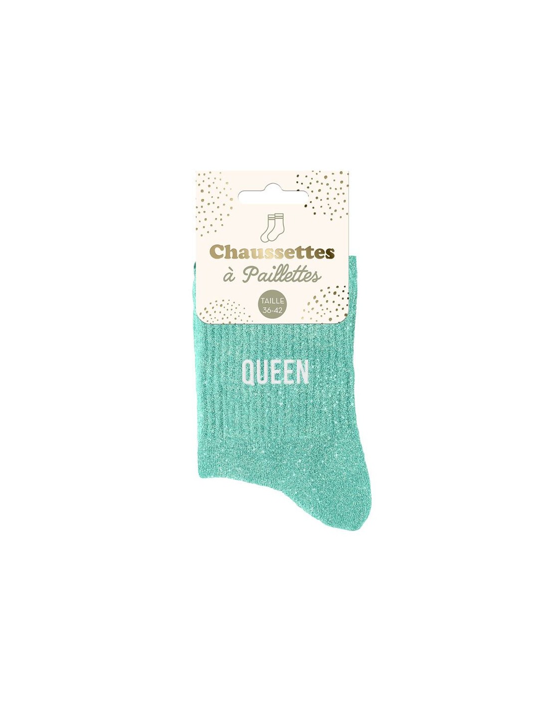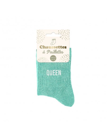 Brillez jusqu’aux pieds avec ces chaussettes scintillantes ornées de l’inscription "Queen". Confortables, fun et pleines de style !