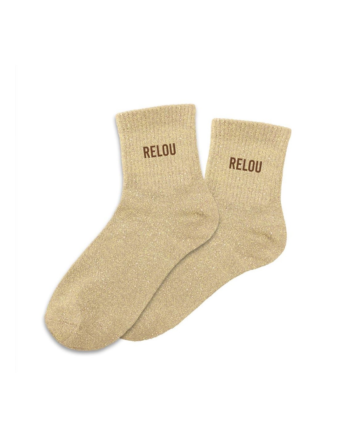 Une touche de glamour à vos tenues avec ces chaussettes scintillantes, subtilement ornées de l’inscription "Relou". Un clin d’œil audacieux, à porter avec style et assurance.