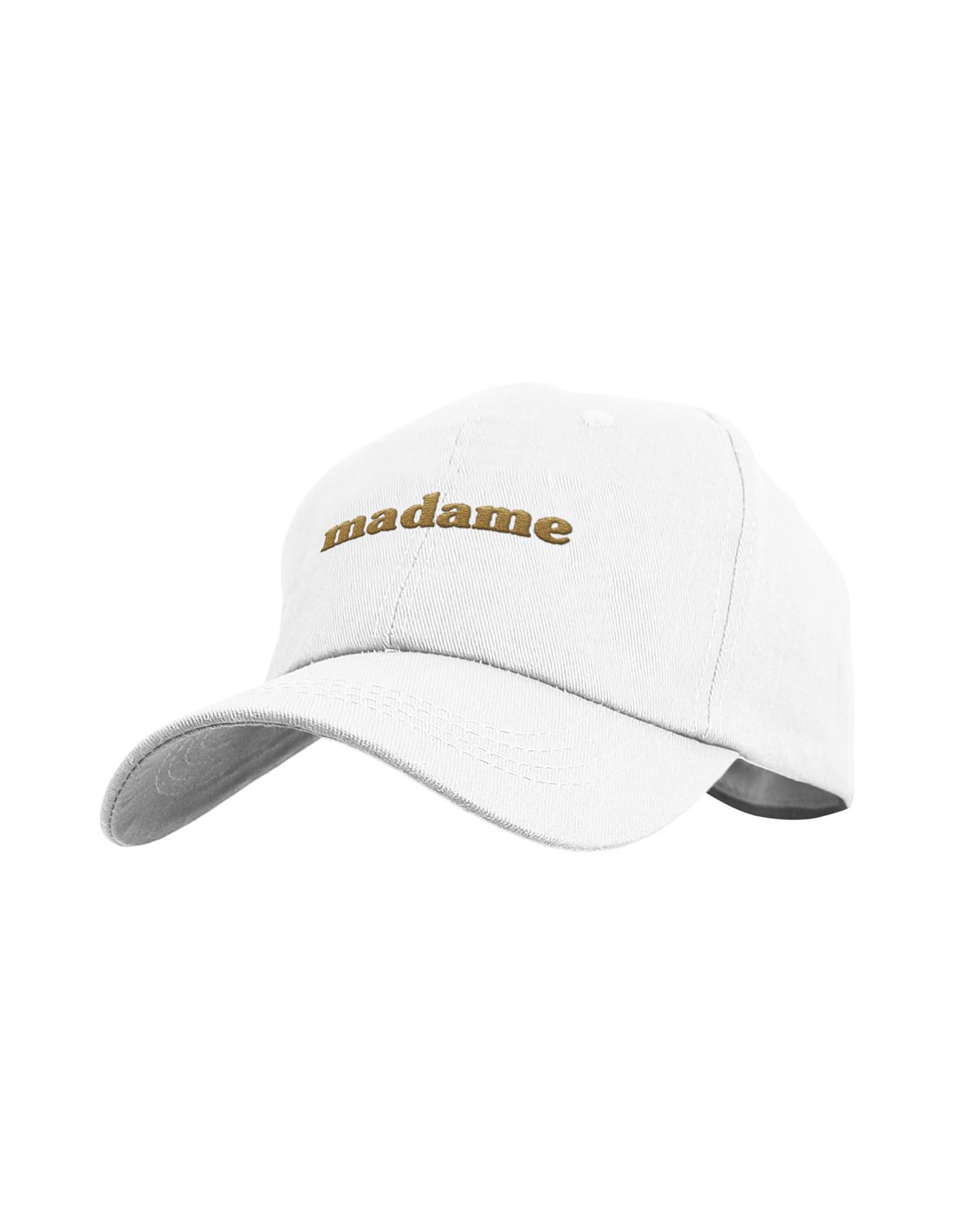 La casquette est en 100% coton blanche avec la mention brodée "Madame" en marron sur l'avant.