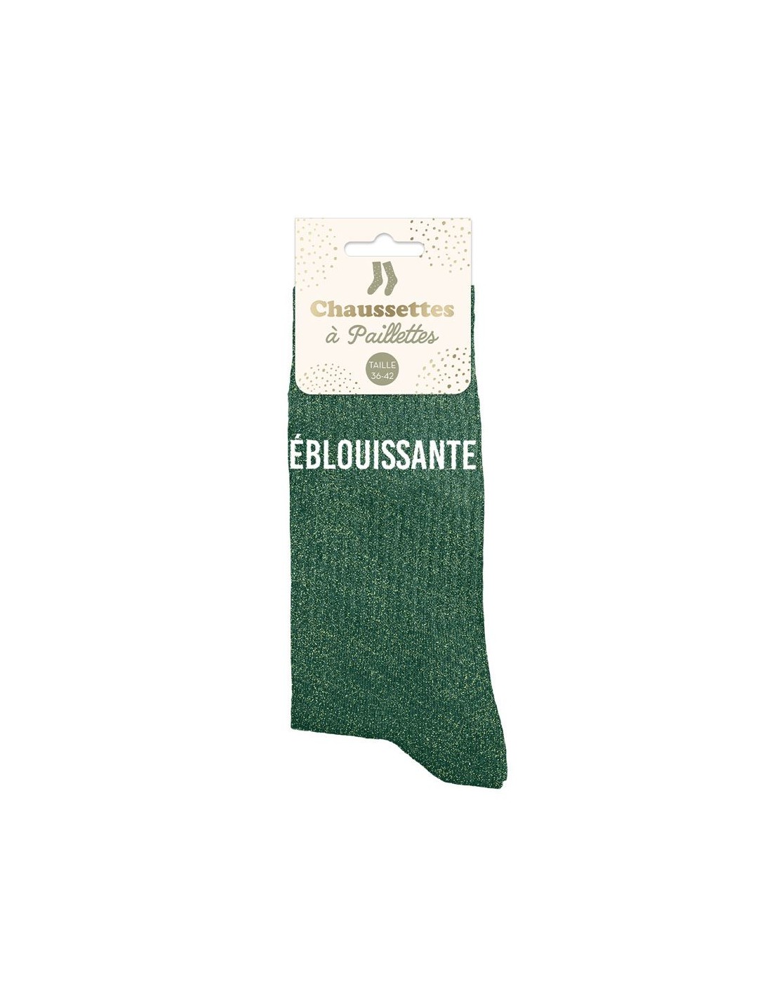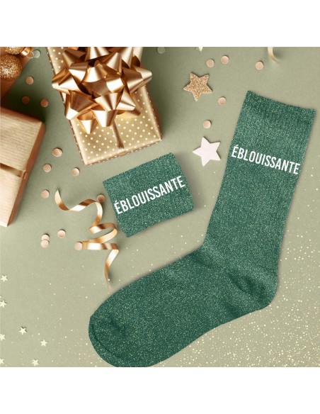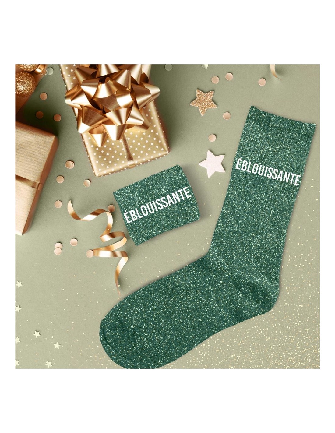 Ces chaussettes vertes à paillettes avec la mention "Éblouissante" en blanc sont la garantie de passer un hiver bien au chaud.