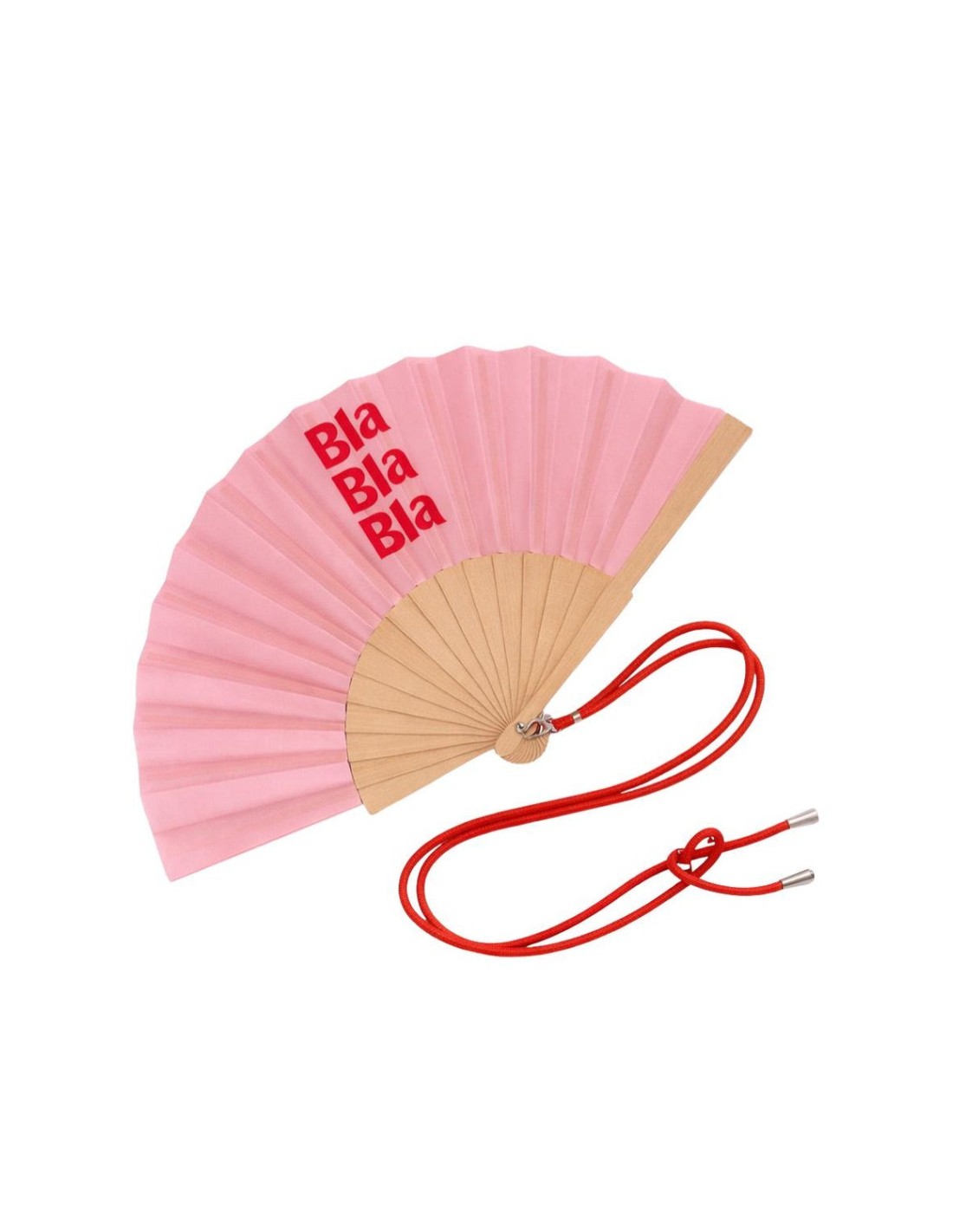 L’éventail avec bandoulière « Bla Bla Bla » est l’accessoire parfait pour survivre aux grosses chaleurs avec humour.