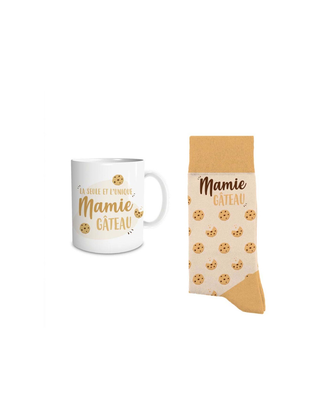 Faites plaisir à votre mamie avec ce coffret cadeau "Mamie Gâteau" comprenant un mug en céramique et une paire de chaussettes douillettes. Une attention tendre et utile, parfaite pour toutes les occasions.