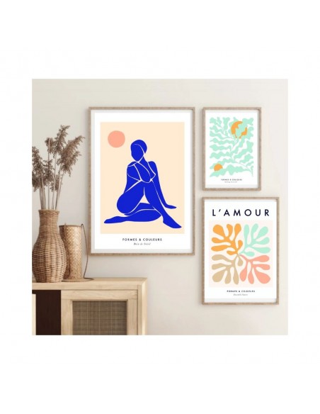 Collection Feuilles : Des couleurs, des formes abstraites, des lignes et traits fins et papiers découpés. De jolis duos sont à réaliser avec les affiches de la collection. Toujours un côté très féminin dans les illustrations de Dominique Vari.