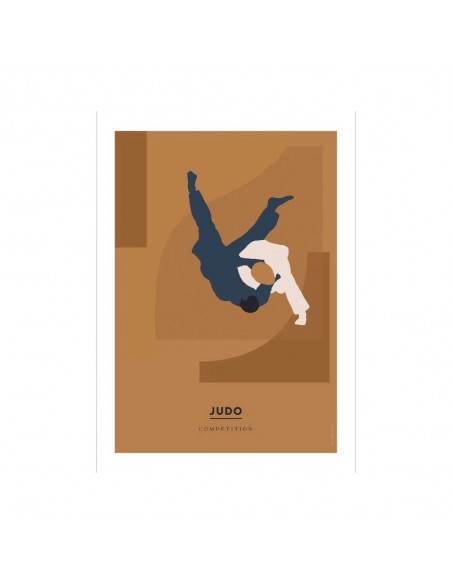 Vivez l'intensité du judo avec notre affiche. Combat entre adversaires, tons jaunes, une décoration énergique pour les amateurs de ce sport martial.