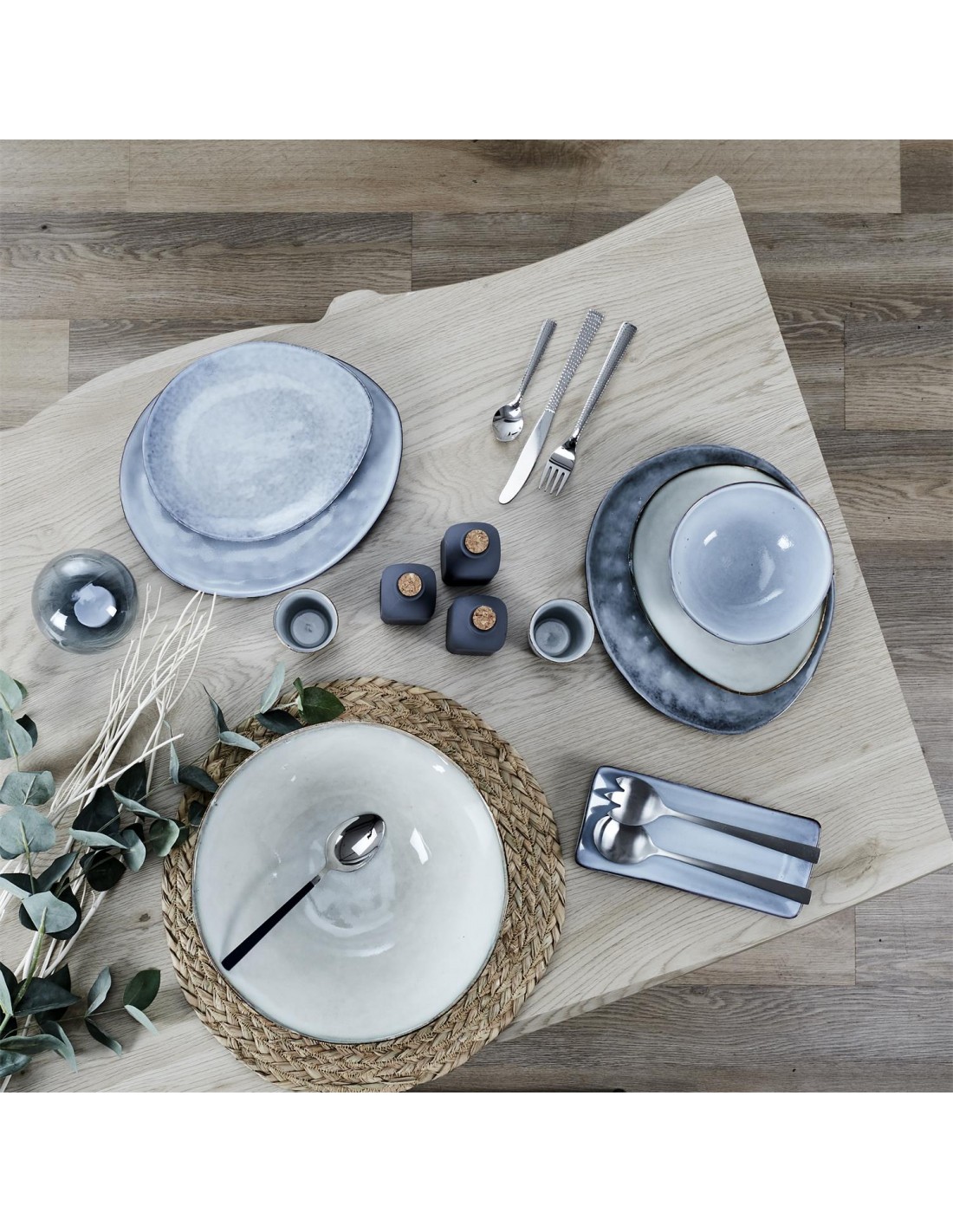 Produit artisanal en grès : chaque pièce est unique et comporte des variations de couleurs différentes.