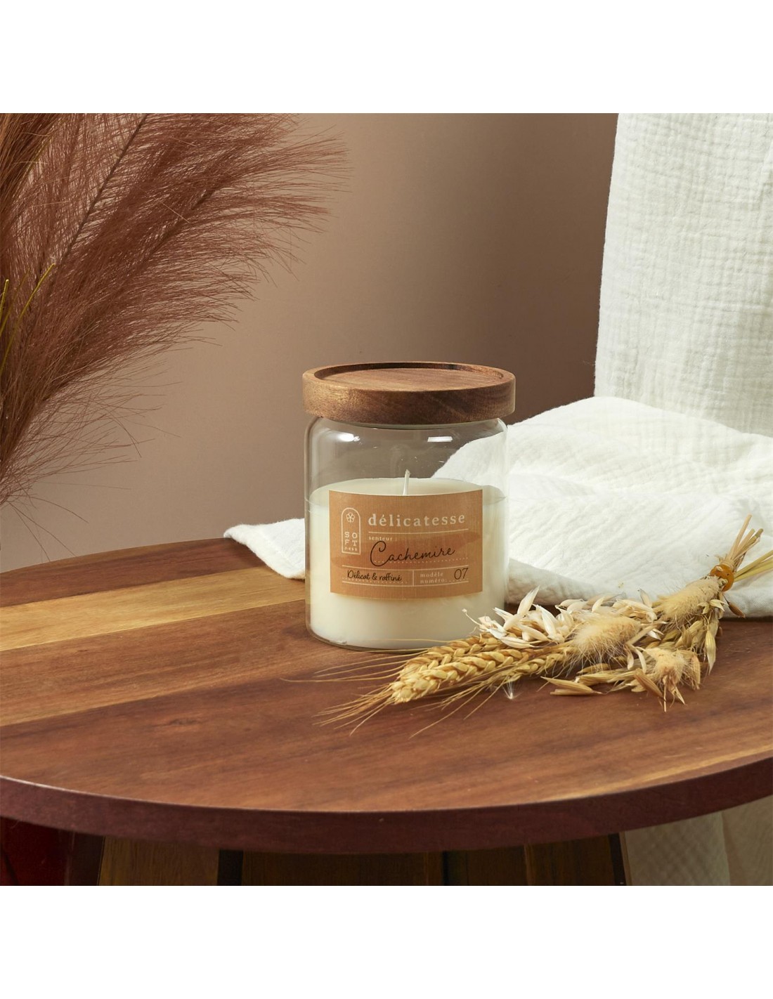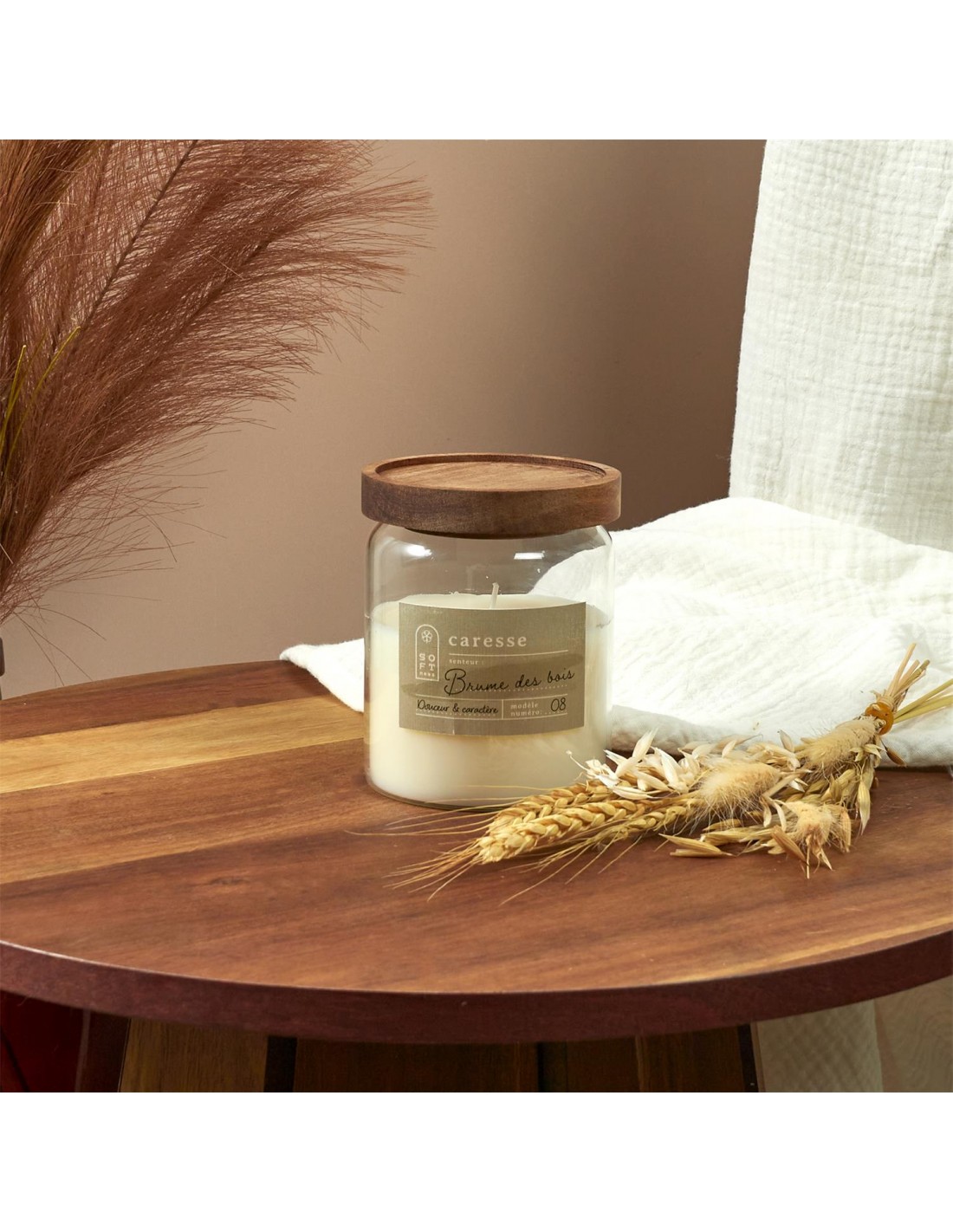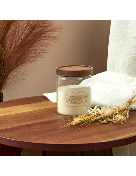 Conçue avec beaucoup d'amour et de style, le contenant de cette bougie est en verre avec un joli couvercle en acacia.