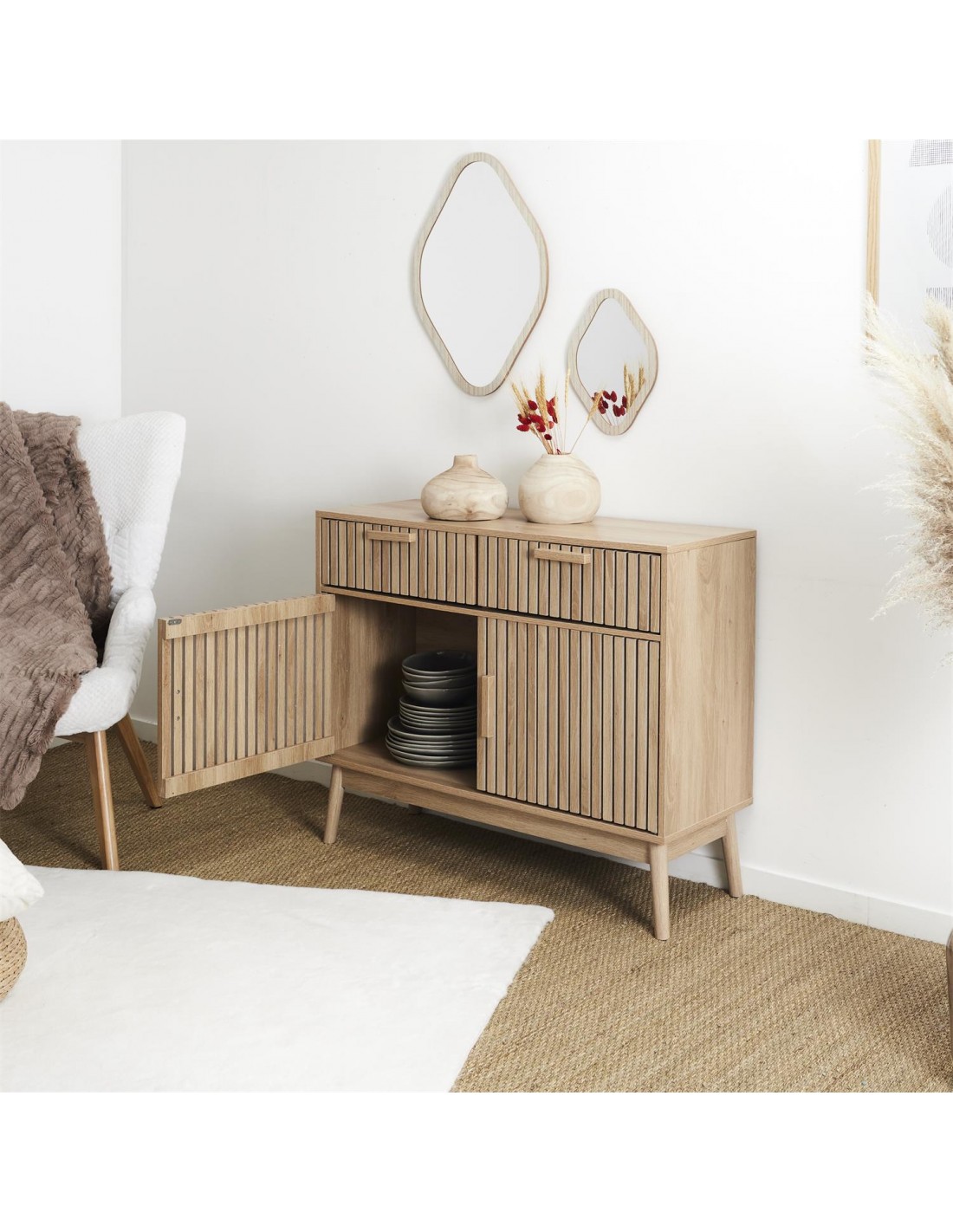 Le buffet Kara en bois naturel est un meuble polyvalent au design élégant.