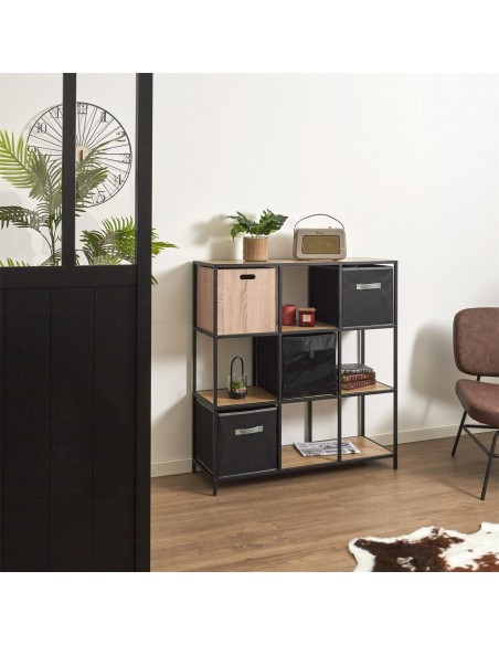 Découvrez ce rangement modulable en colonne à 9 cases LOCO ! Il apportera une touche de modernité dans votre intérieur tout en vous offrant une solution de rangement pratique. Laissez-vous séduire par son alliance d'industriel et de bois. Avec ces 3 cases, laisser libre cours à votre imagination pour exposer vos éléments de décoration ou pour ranger vos effets personnels grâce à des caisses de rangement vendues séparément.