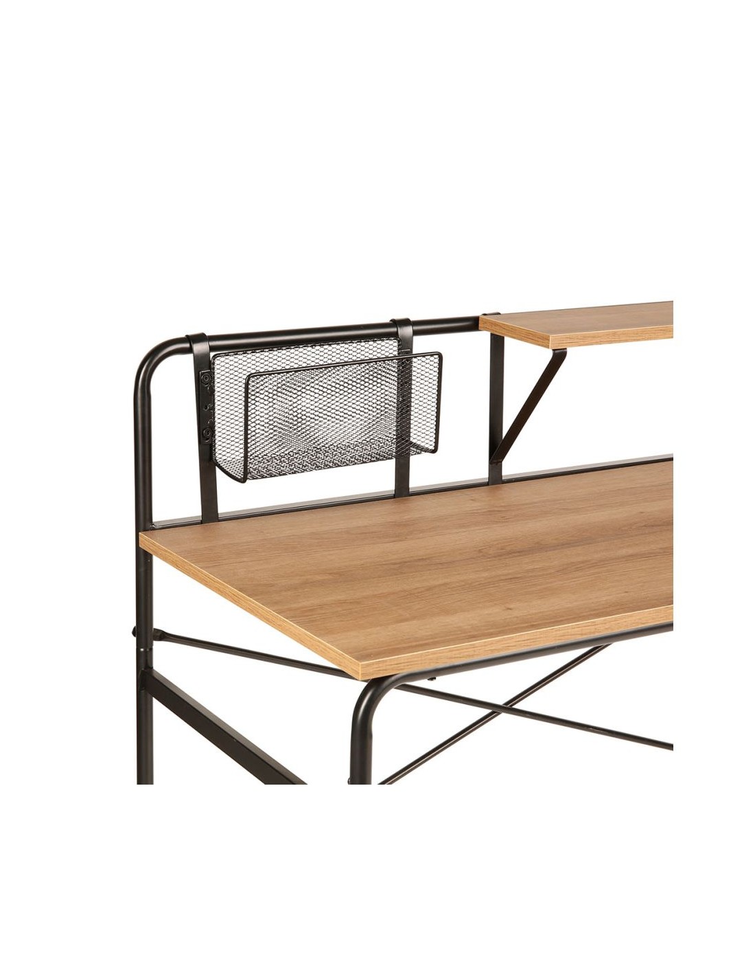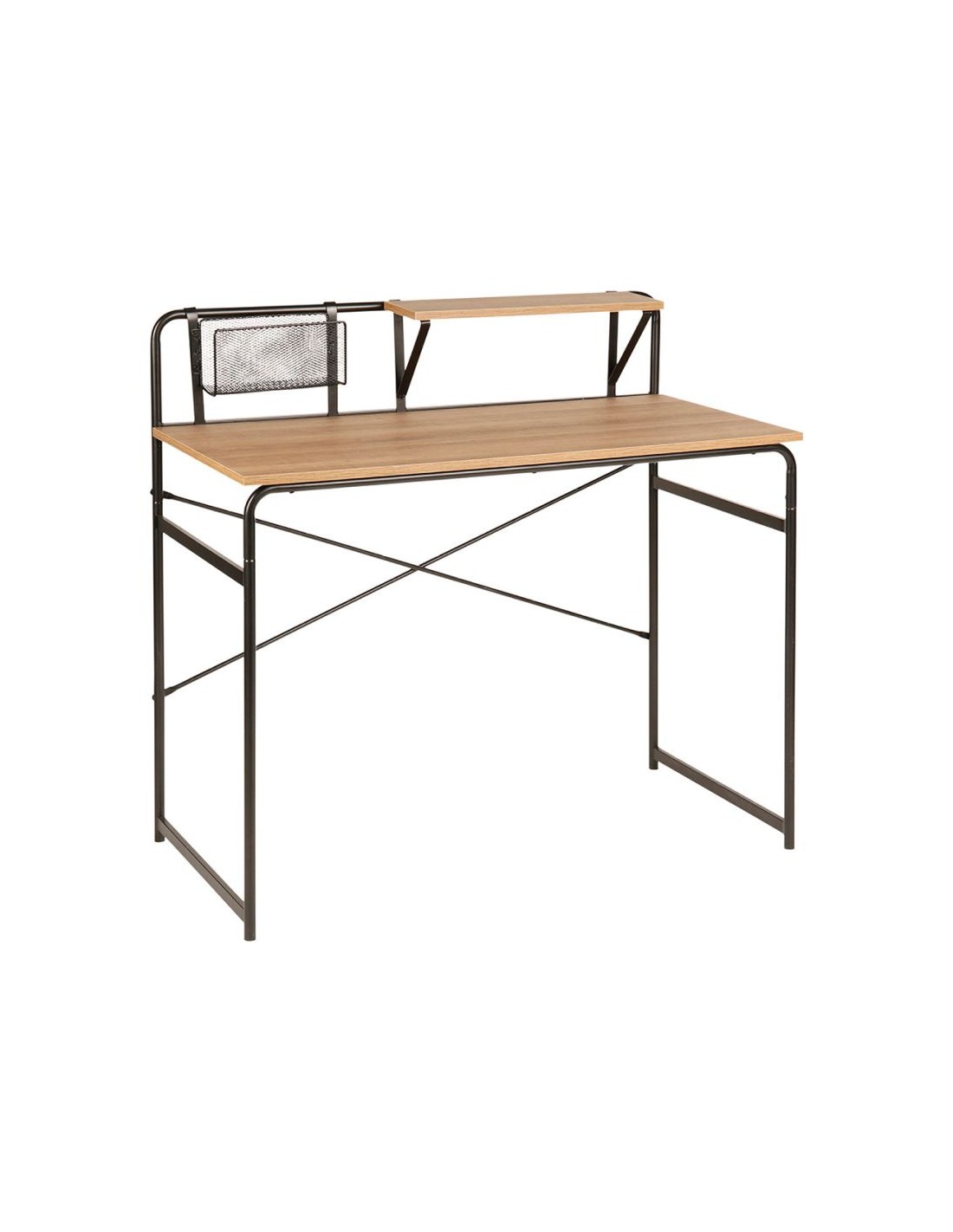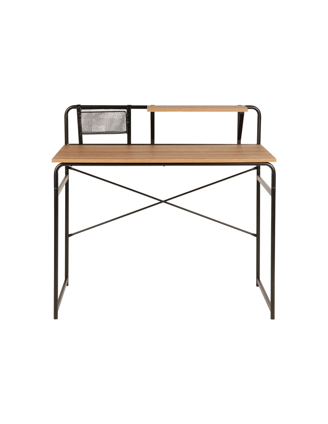 Compact et fonctionnel, ce bureau est équipé d’une tablette de rangement supérieure ainsi que d’un panneau latéral grillagé idéal pour accrocher des accessoires ou organiser vos documents.