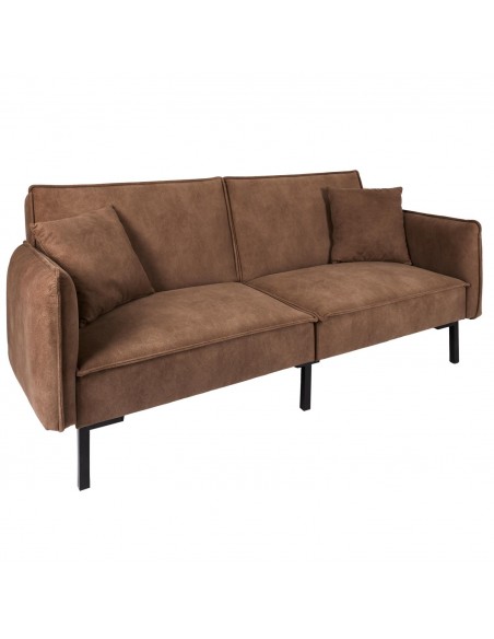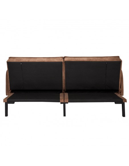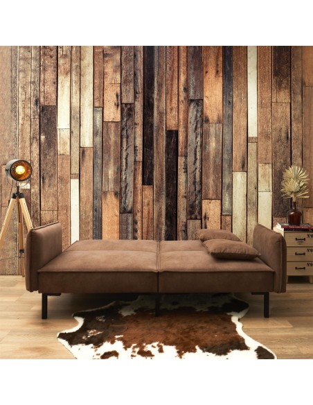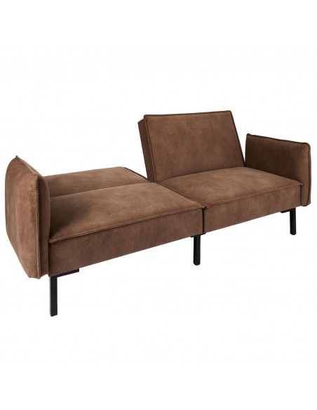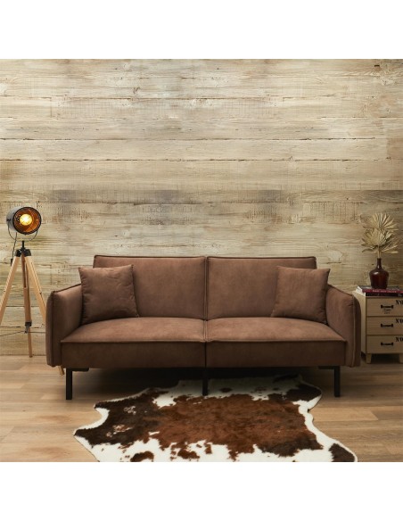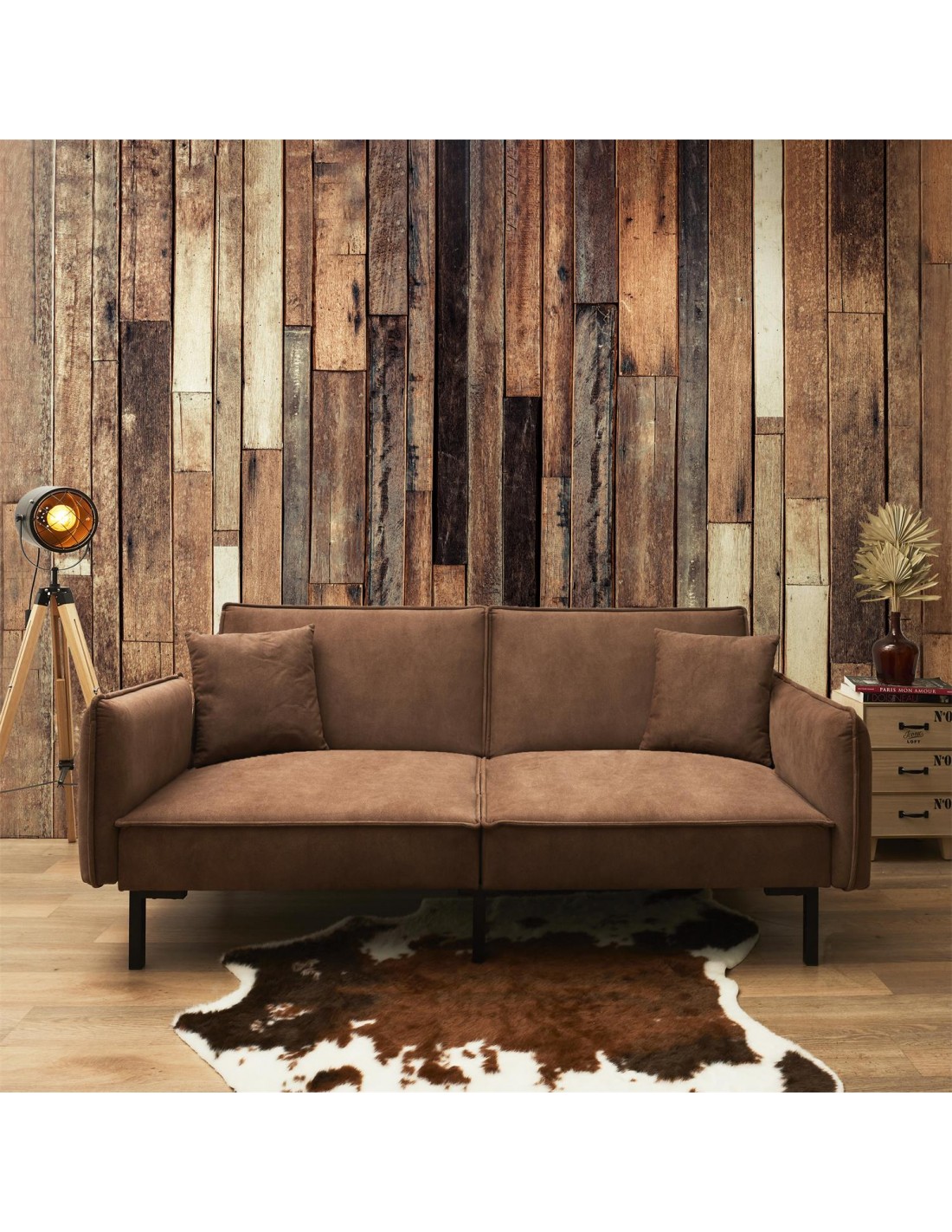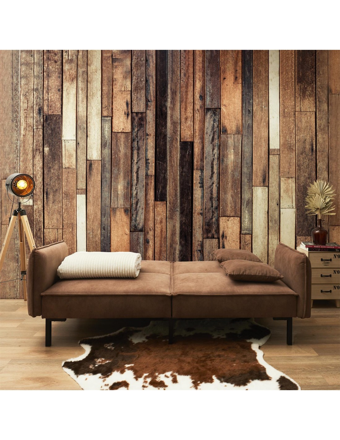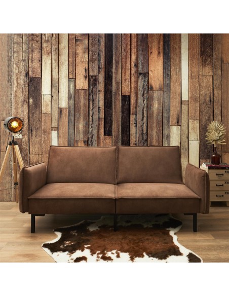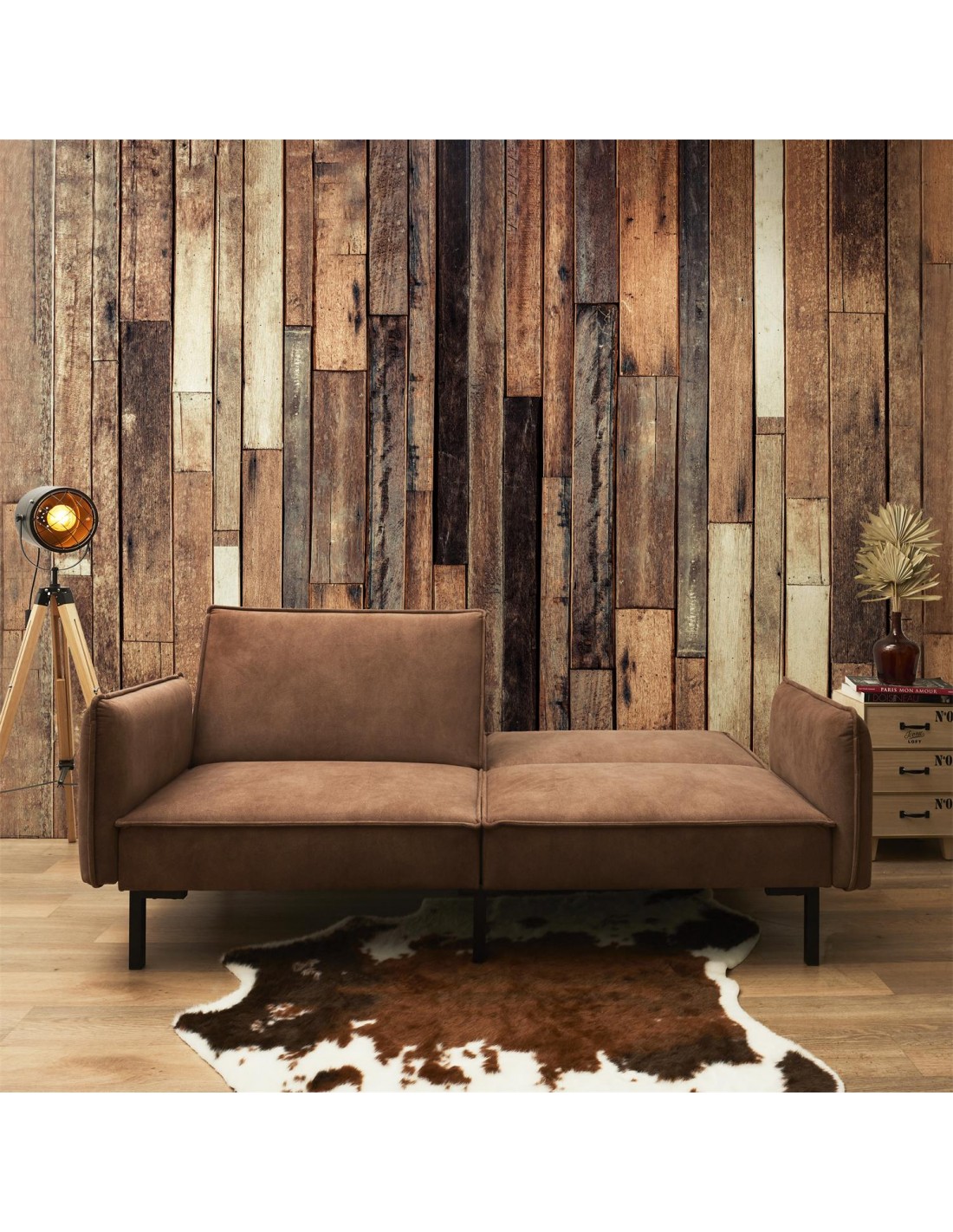 Blotissez-vous en toute décontraction dans ce canapé marron aux accents vintage et savourez son confort ! Dépliez-le pour accueillir vos invités, ils ne voudront plus le quitter.