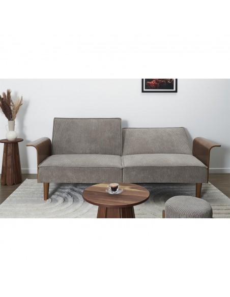 Le canapé convertible Scott est à la fois élégant et pratique. Grâce à son design côtelé et ses accoudoirs en bois, il apporte une touche chaleureuse à votre intérieur. Fonctionnalité clé : convertible, il se transforme facilement en lit, parfait pour les petits espaces. Dimension : 205x83x90cm