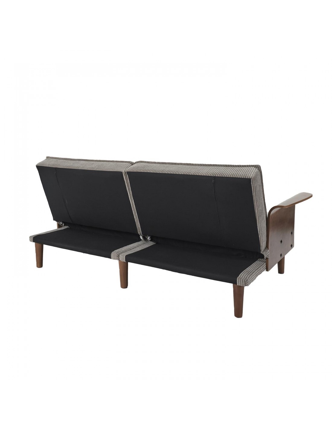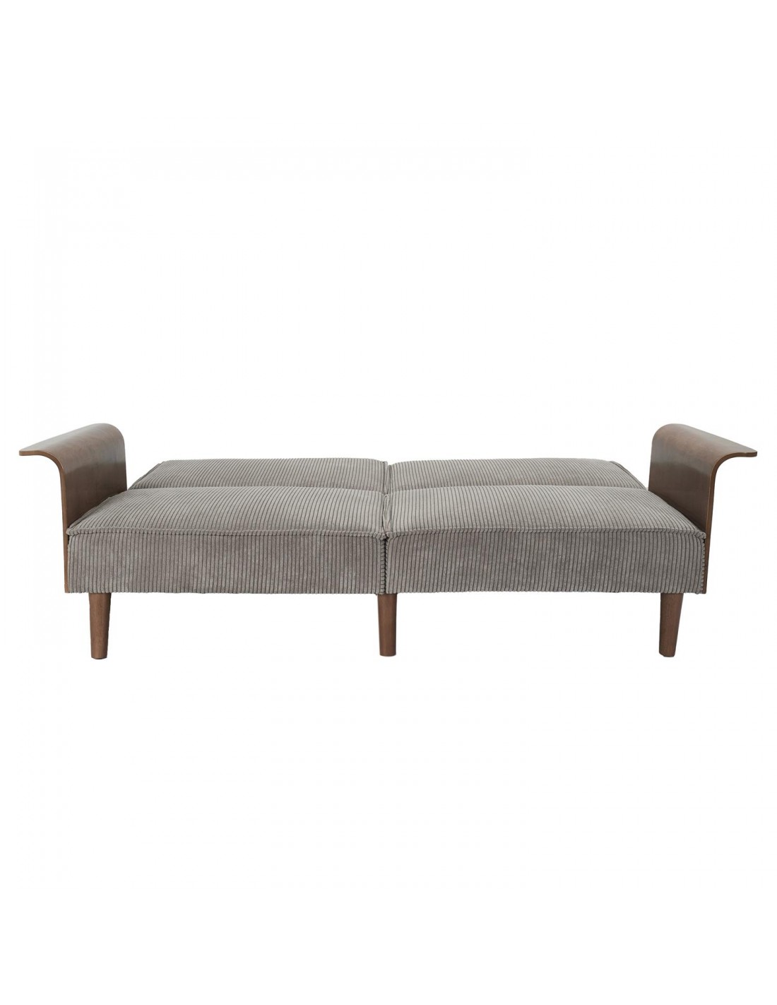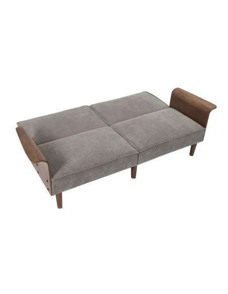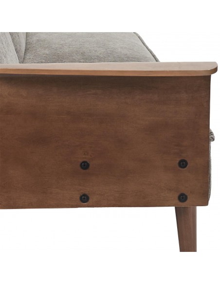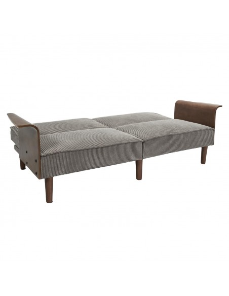 SCOTT - Canapé convertible 3 places en velours côtelé gris et bois L205 cm
