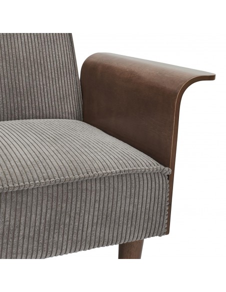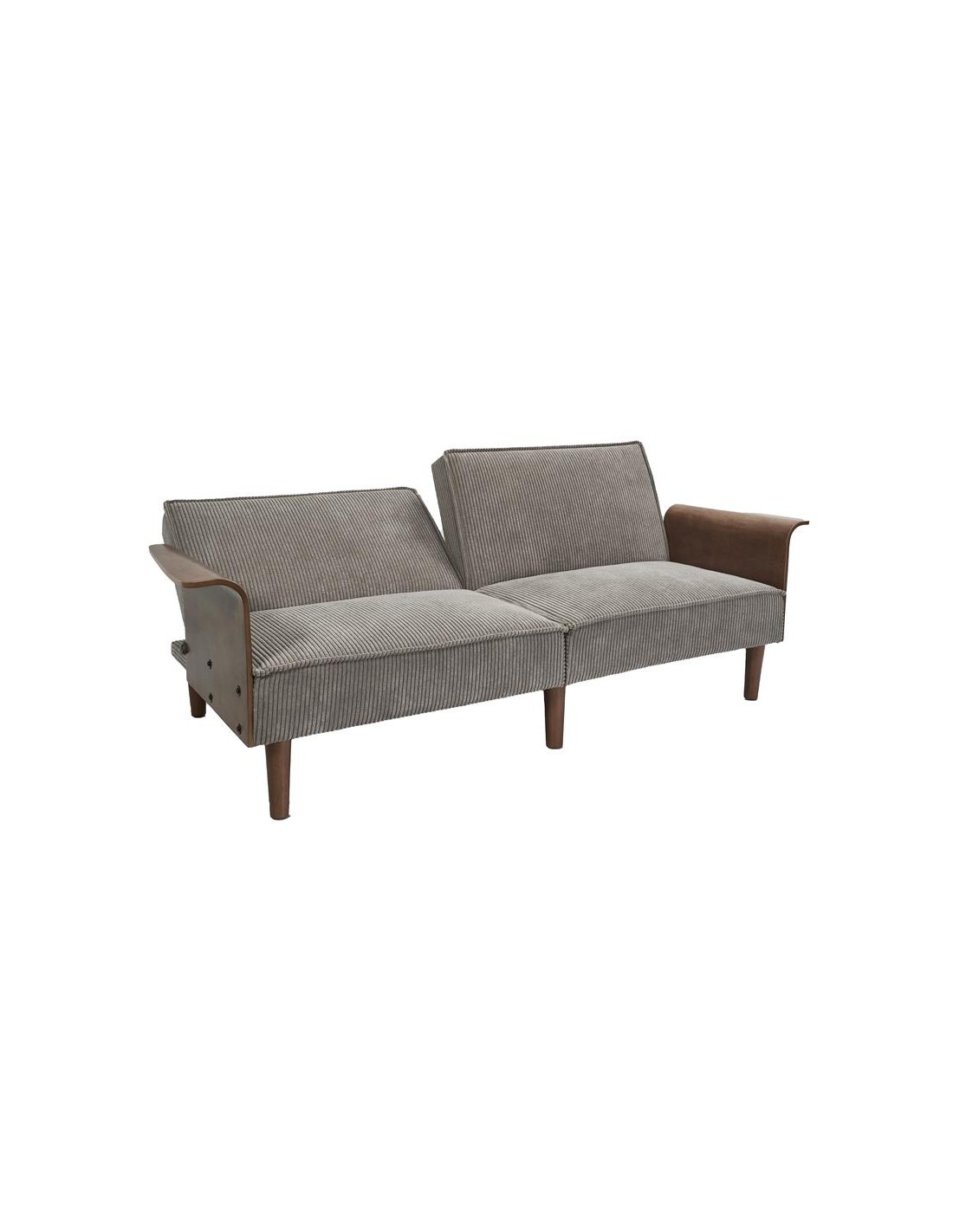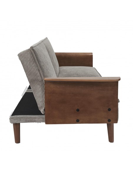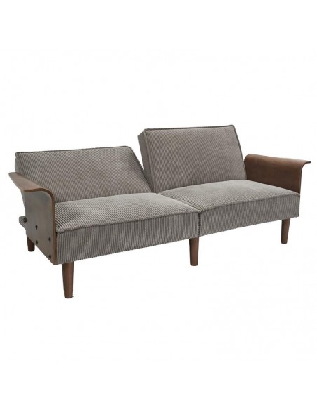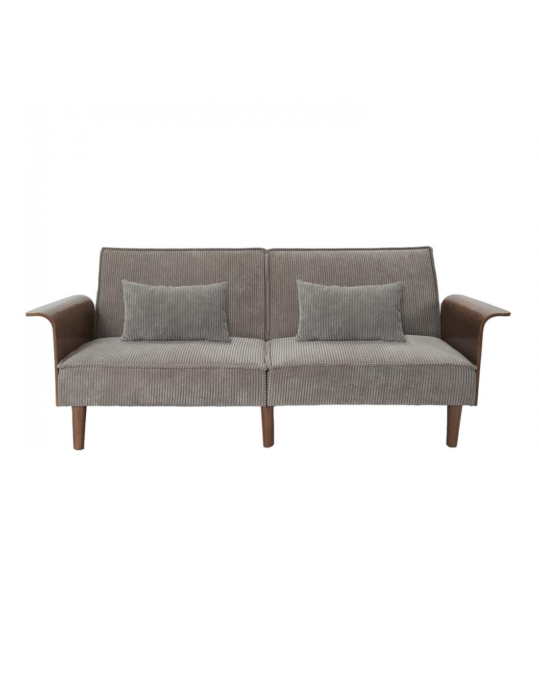 SCOTT - Canapé convertible 3 places en velours côtelé gris et bois L205 cm