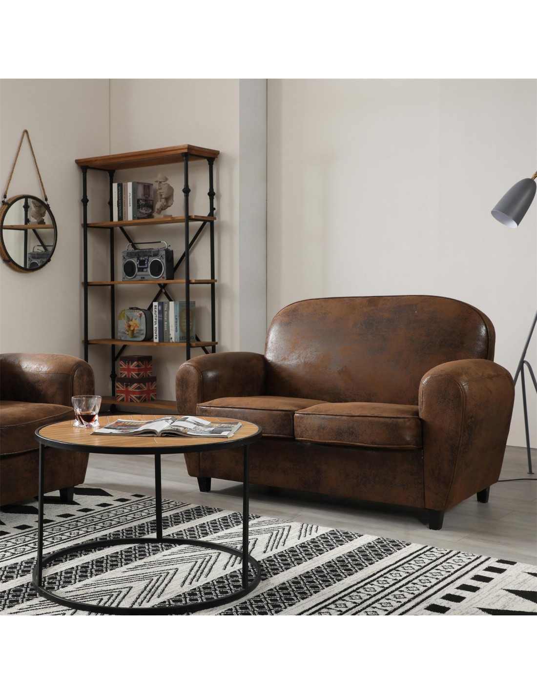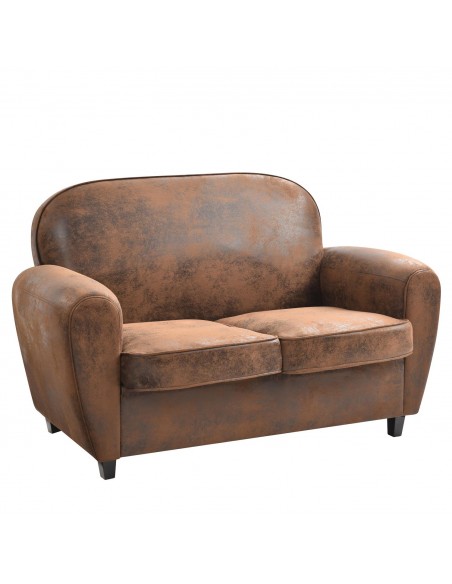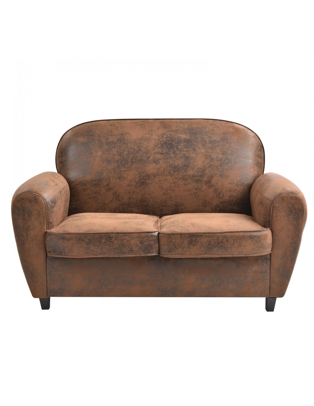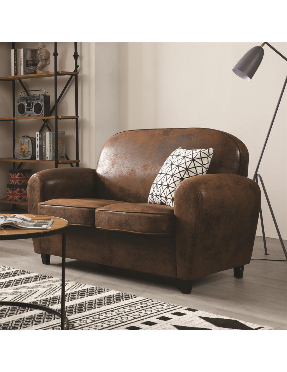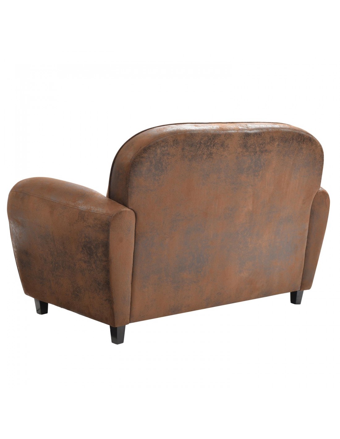 OXFORD - Canapé club 2 places marron aspect cuir vieilli