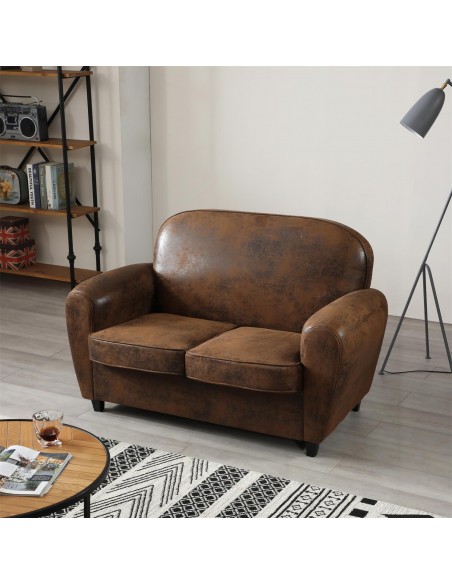 Canapé 2 Places Marron Aspect Cuir Vieilli de la gamme Oxford.