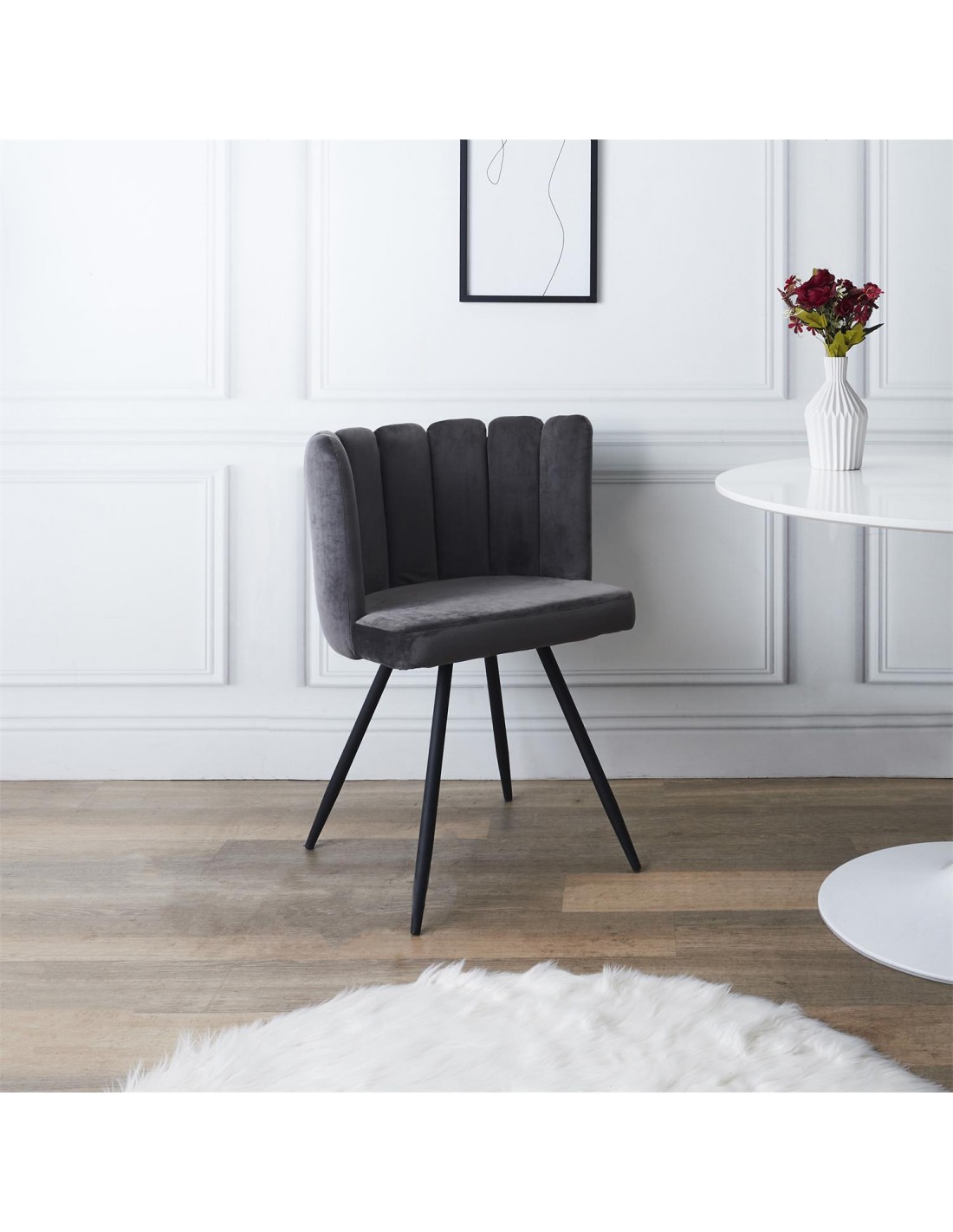 - Comblez vos invités avec la chaise Ariel ! Son velours gris luxueux délicatement capitonné ainsi que son charme poudré attireront tous les regards ! Blottissez-vous en toute décontraction dans cette chaise et savourez son confort ! Son design apportera une touche ultra-chic à votre décoration.