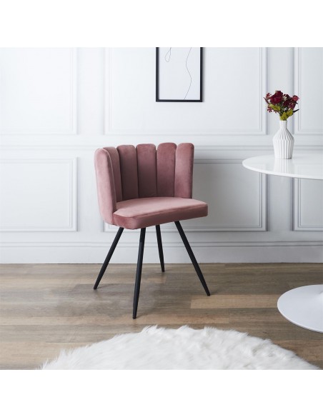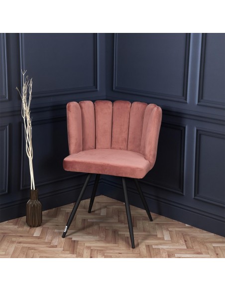 Comblez vos invités avec la chaise Ariel ! Son velours rose luxueux délicatement capitonné ainsi que son charme poudré attireront tous les regards ! Blottissez-vous en toute décontraction dans cette chaise et savourez son confort ! Son design apportera une touche ultra-chic à votre décoration.