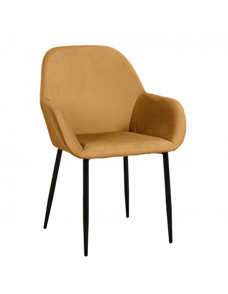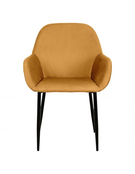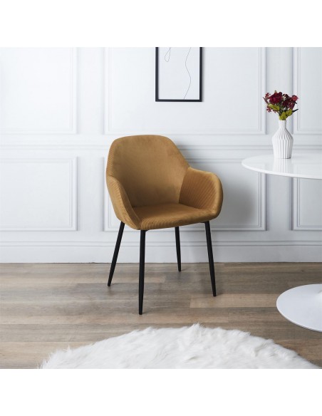 JULIA - Chaise avec accoudoirs en velours côtelé moutarde