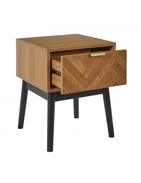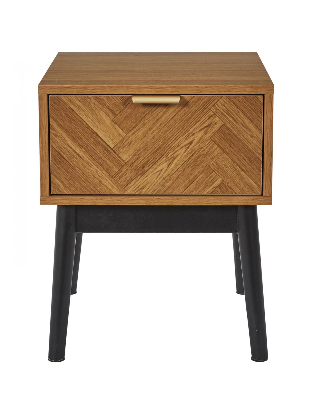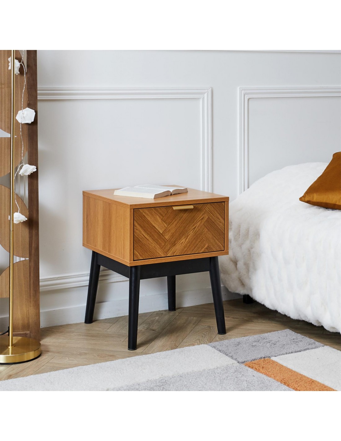 Le chevet Félix se distingue par son design élégant et moderne. Sa finition en bois et pieds contrastants ajoute une touche raffinée à n'importe quel intérieur. Sa forme compacte permet une intégration facile dans toutes les chambres, tout en offrant un espace de rangement pratique. Idéal pour ceux qui recherchent une combinaison de fonctionnalité et de style, ce chevet apportera une atmosphère chaleureuse et sophistiquée à votre espace.
