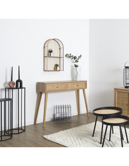 Cette console apportera une touche exotique à votre intérieur avec son style très bohème, en bois naturel et son cannage.