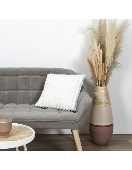 Housse de coussin en flanelle ultra-douce coloris écru, effet grosses côtes. Un accessoire chaleureux et élégant pour un intérieur cocooning. (Garnissage vendu séparément.)