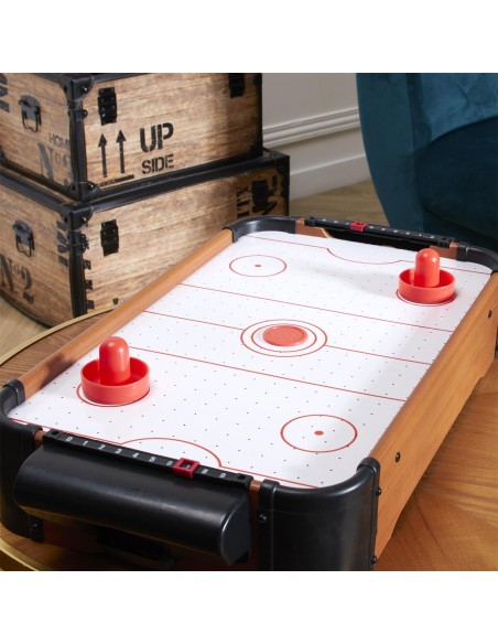 - Revivez les sensations de l’air hockey à la maison avec ce mini jeu de table ! Compact et amusant, il garantit des parties endiablées en famille ou entre amis. Facile à installer, il fonctionne sur piles et s’adapte à toutes les tables.