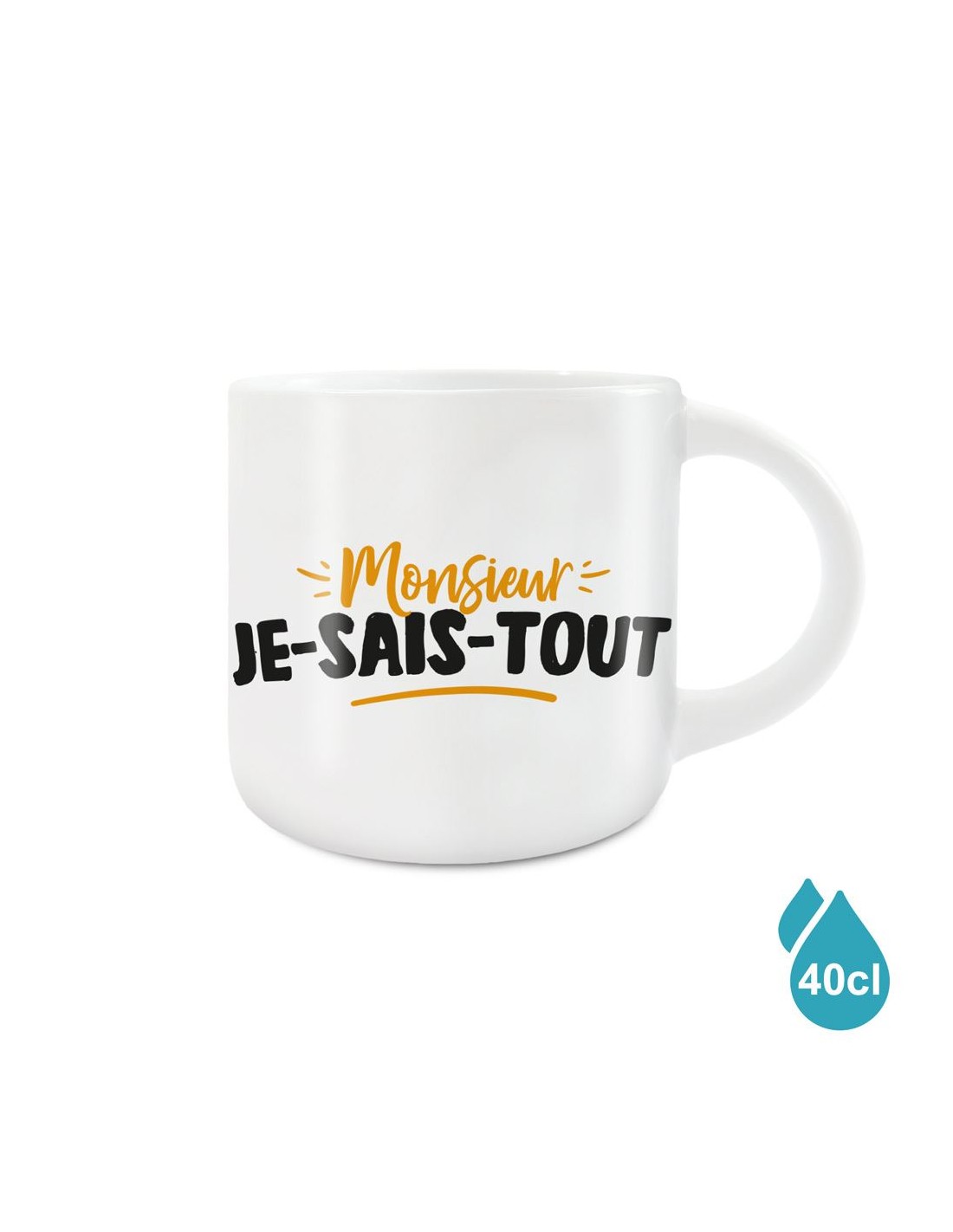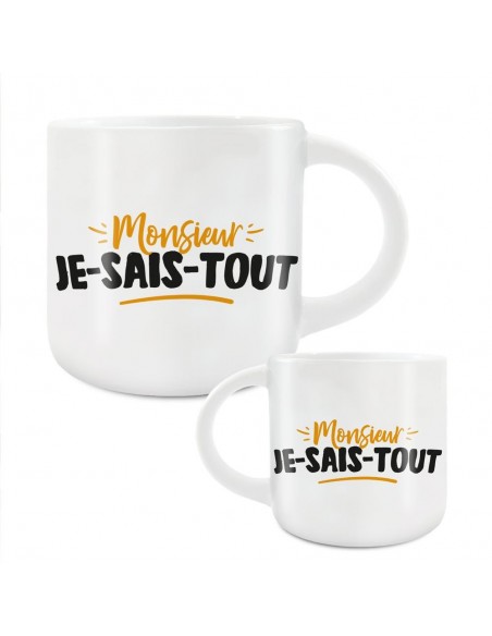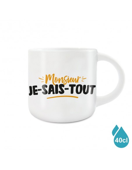 Ce grand mug "Monsieur JE-SAIS-TOUT" est une idée cadeau idéale à offrir à un proche pour sa fête ou anniversaire.