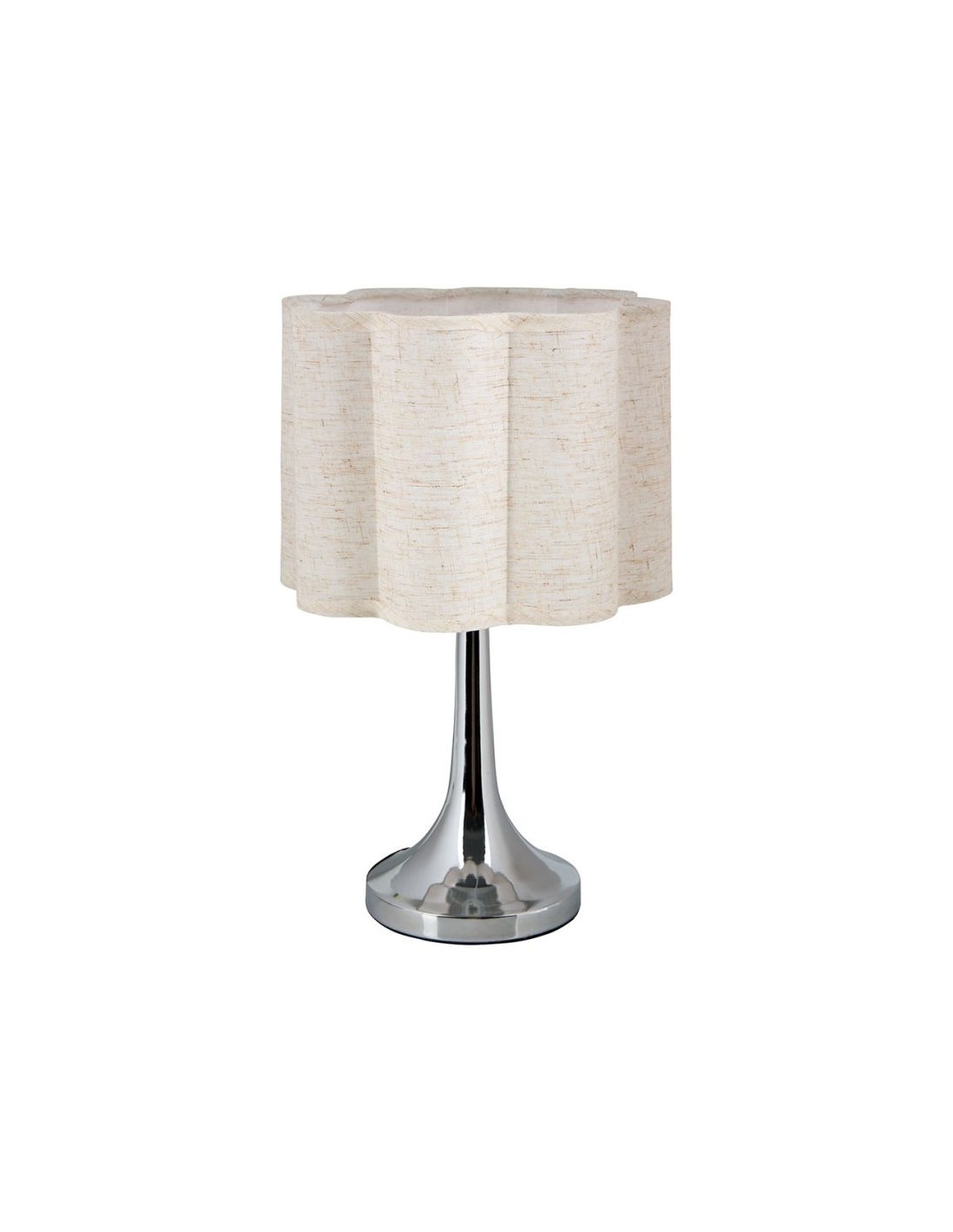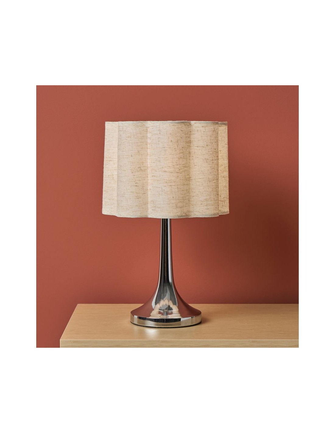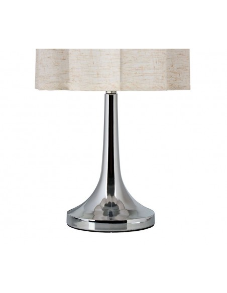 Apportez une touche de raffinement et de lumière douce à votre intérieur avec cette lampe au design contemporain. Sa base en chrome brillant reflète la lumière et s'intègre parfaitement dans tout type de décoration, du plus moderne au plus classique. L'abat-jour en tissu beige crée une ambiance chaleureuse et apaisante, idéale pour vos soirées détentes ou pour illuminer subtilement votre salon ou votre chambre.