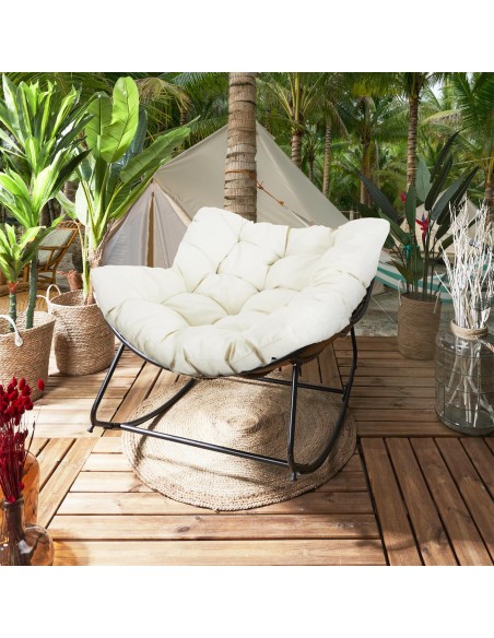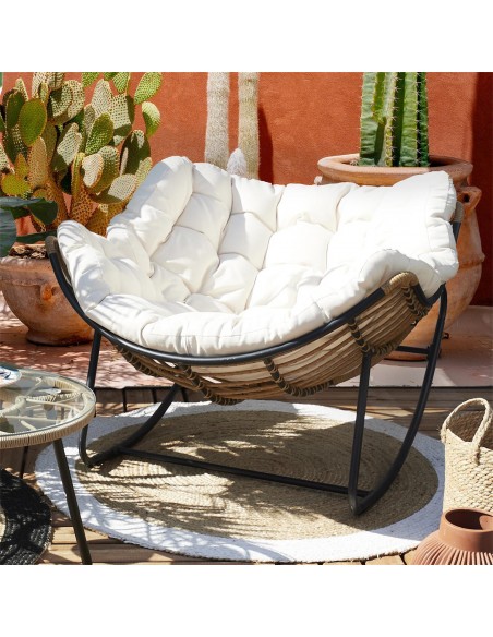 Vous aimez le mobilier design ? Profitez d'un moment entre amis et en famille avec cette assise extraordinaire à bascule ! Sur votre terrasse ou dans votre jardin, détendez vous grâce à ce fauteuil d'extérieur Tulum au look tendance ! Testez son assise et son coussin rembourré, vous ne voudrez plus vous en séparer. Bercez-vous et prenez un bain ensoleillé !