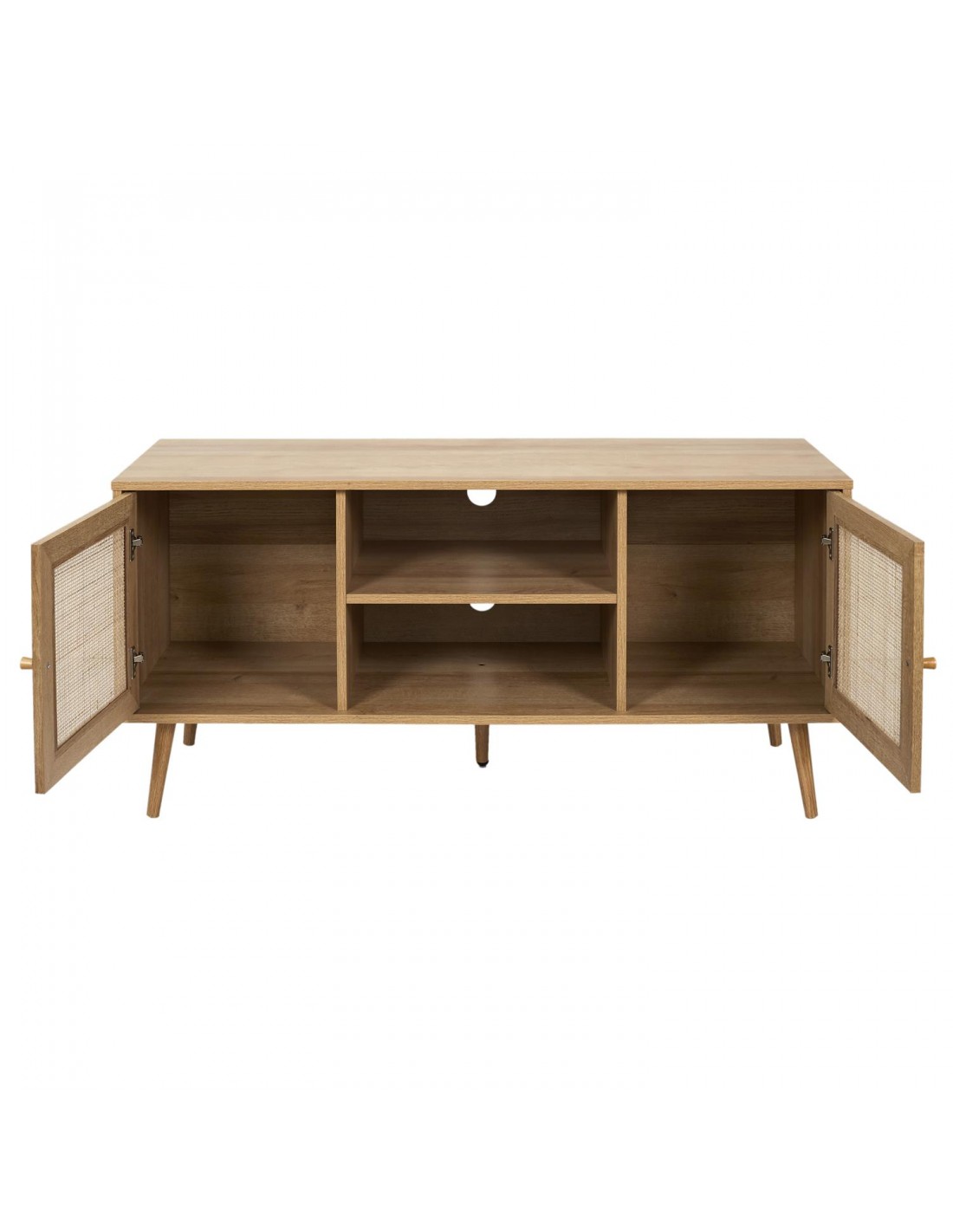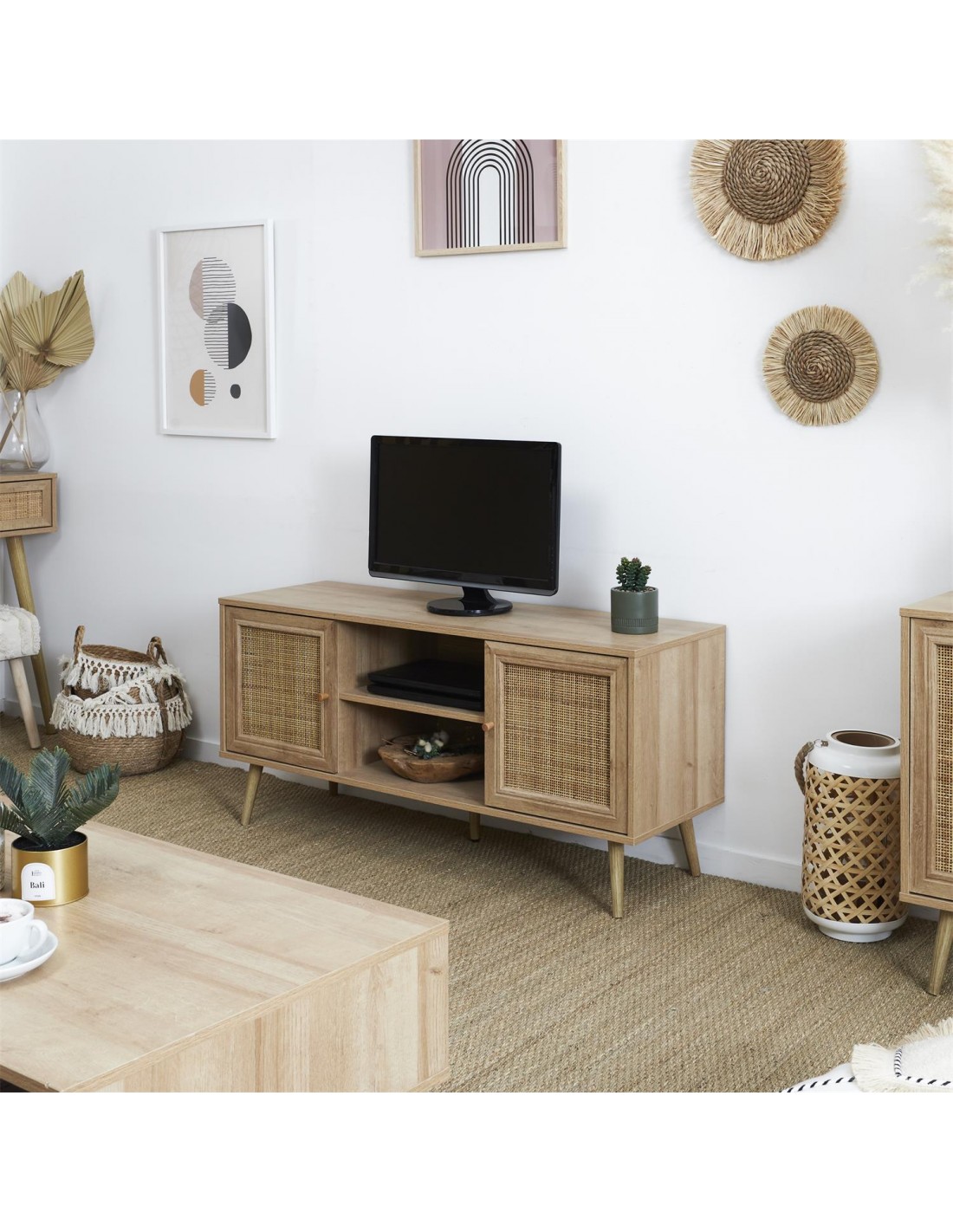 Design et pratique, le meuble TV BAIA vous ravira ! Un meuble TV fonctionnel qui vous permet de ranger et d'organiser vos télécommandes, vos DVD ainsi que pour organiser le câblage. Ce meuble apportera une touche élégante et sophistiquée à votre salon ou votre chambre !