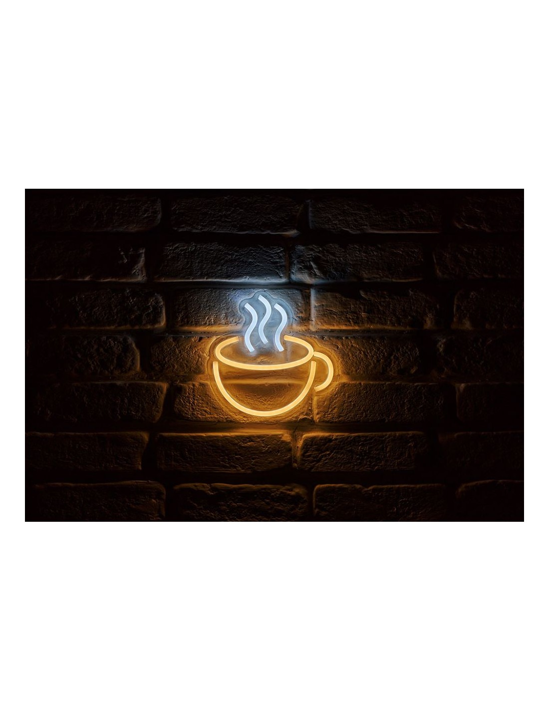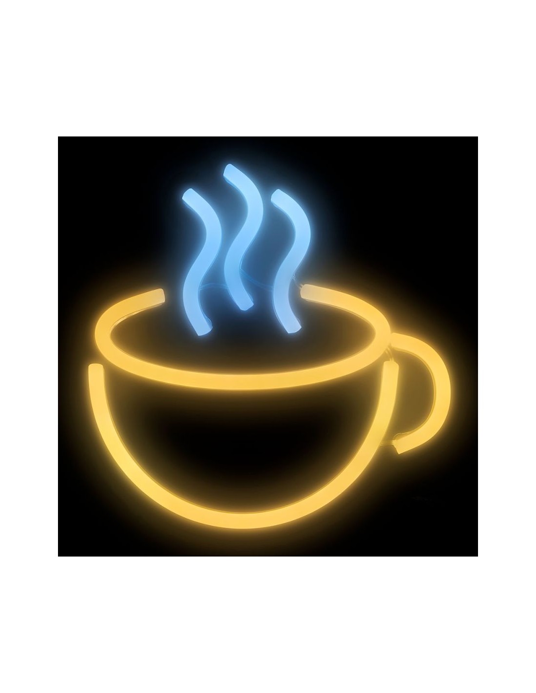 Apportez une touche lumineuse et chaleureuse à votre décoration avec le néon mural USB « Tasse Café ». Son design en forme de tasse fumante diffuse une lumière blanc chaud parfaite pour les ambiances cosy ou les coins café.