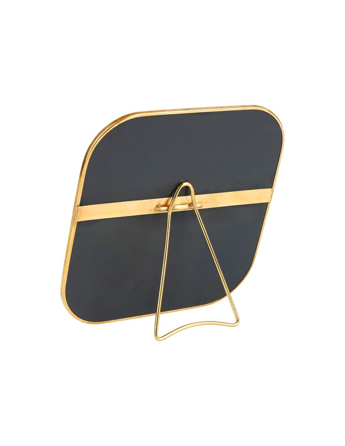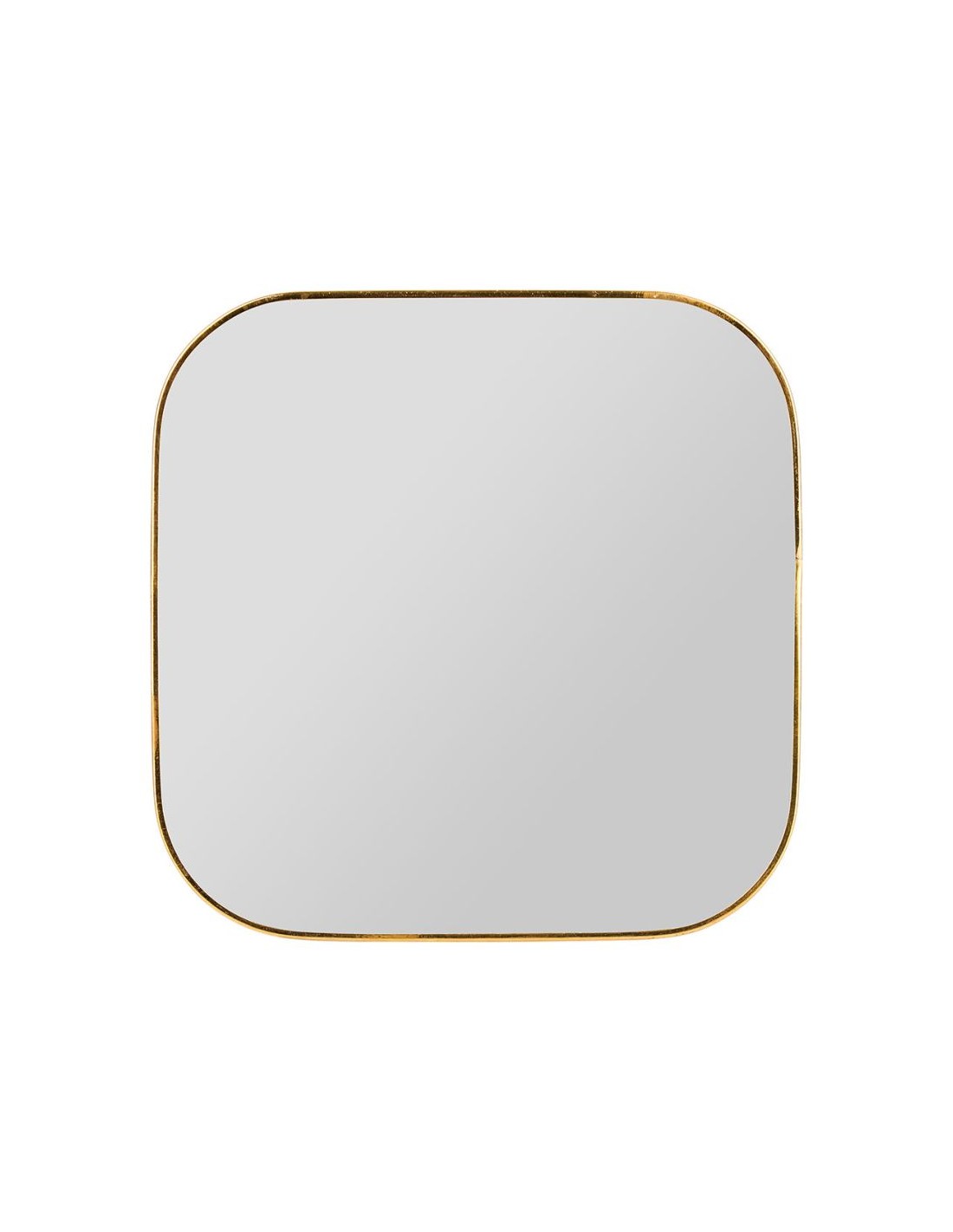 Miroir à poser en métal doré au design carré arrondi. Élégant et pratique, il apporte une touche chic et lumineuse à une coiffeuse, une commode ou une salle de bain.