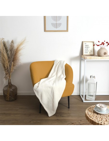 Plaid en maille nid d’abeille coloris crème, à la fois doux, léger et chaleureux. Idéal pour ajouter une touche cocooning et naturelle à votre intérieur.