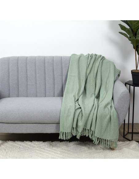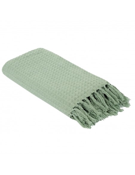 Jeté de canapé gaufré en coton - vert d'eau - 130X160cm