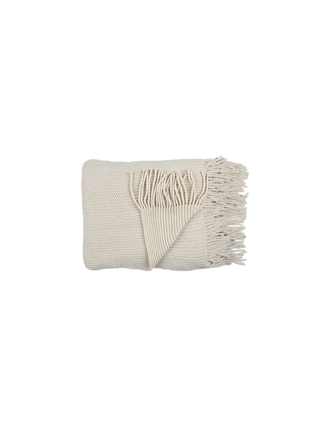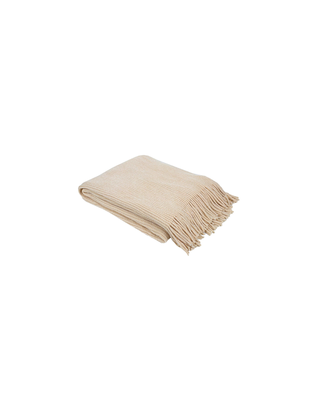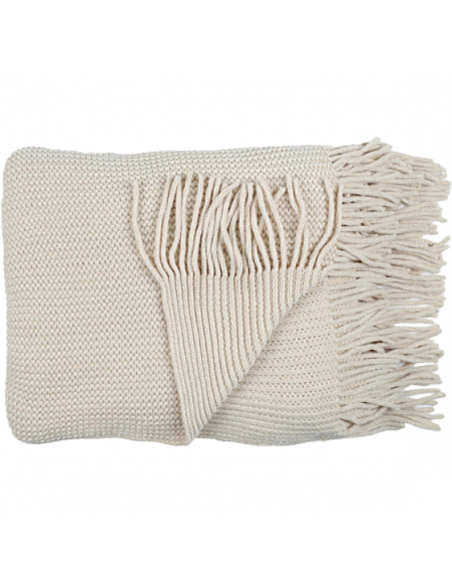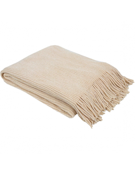 Plaid en maille chenille ultra-douce coloris beige avec finitions à franges. Un accessoire élégant et chaleureux pour habiller votre canapé ou votre lit.