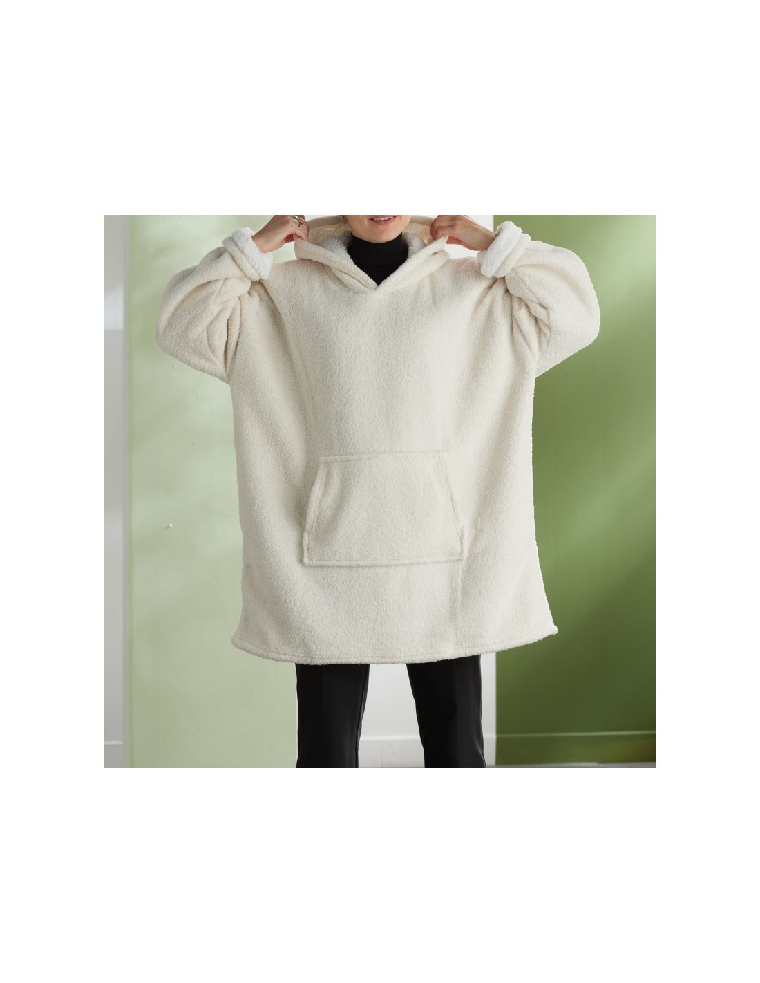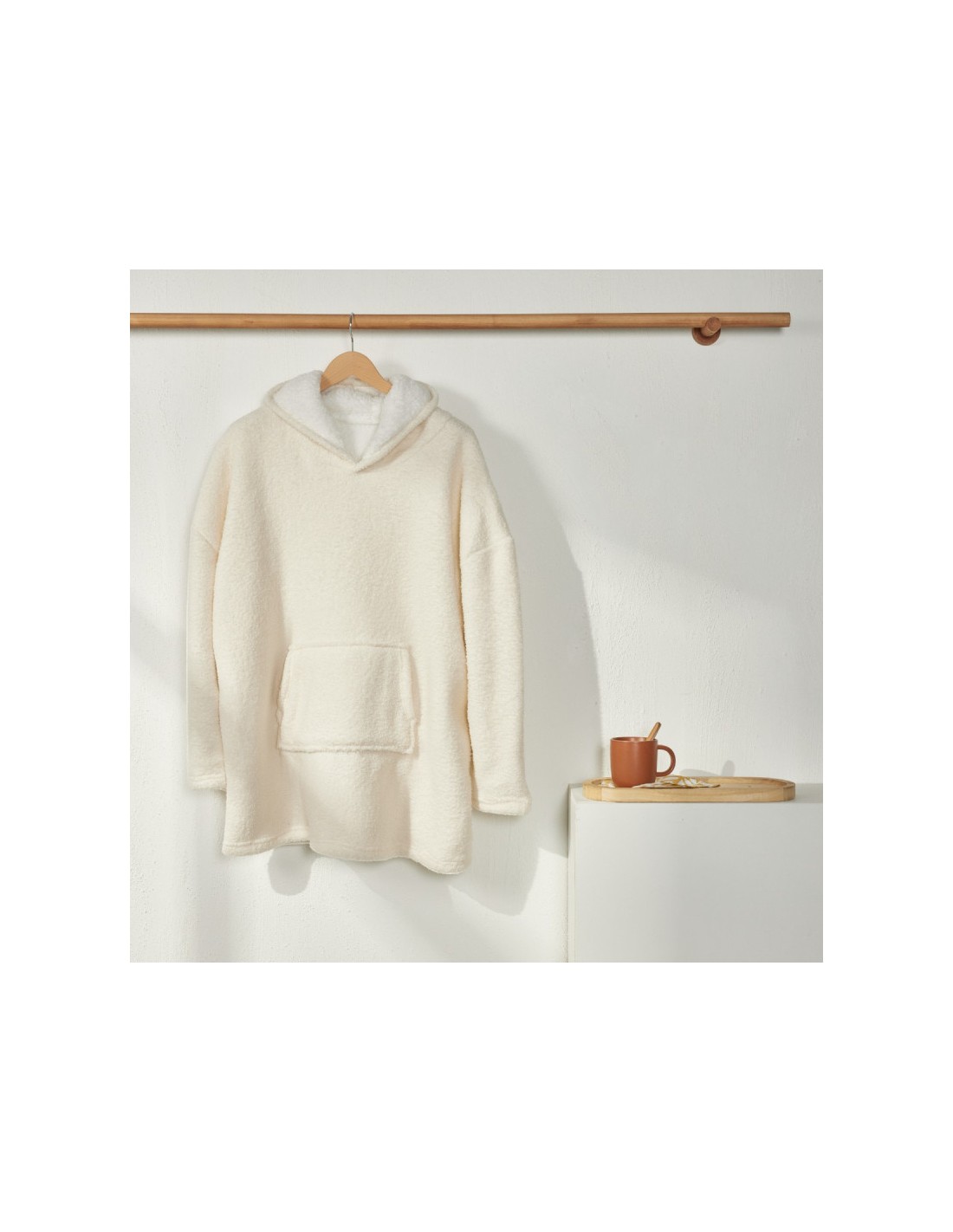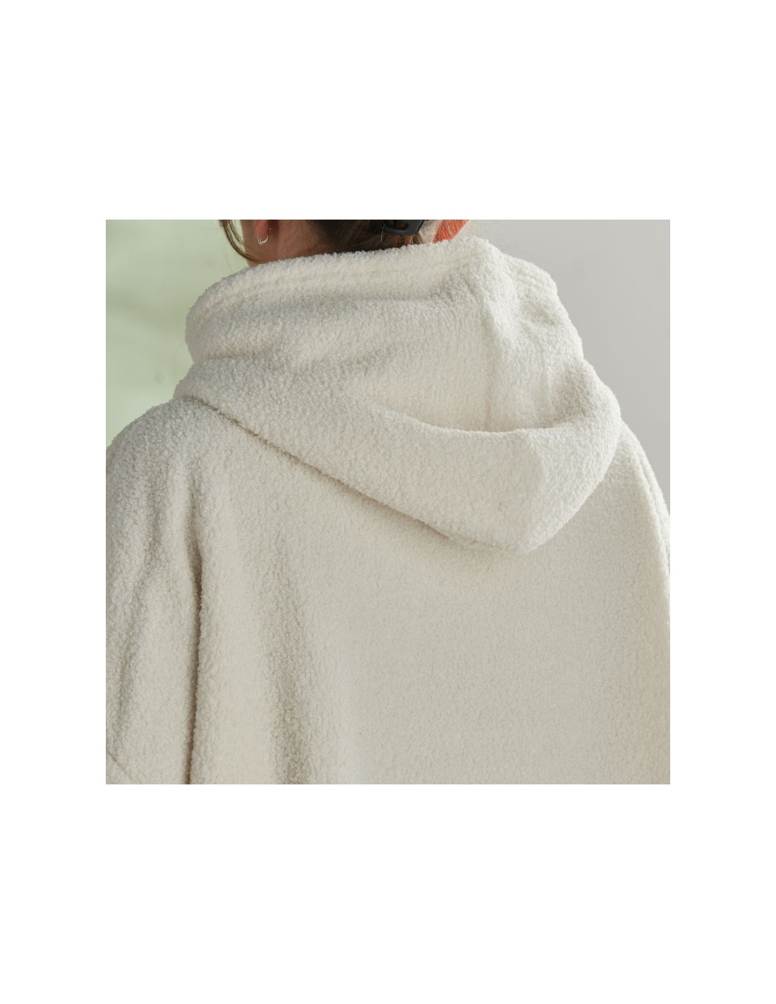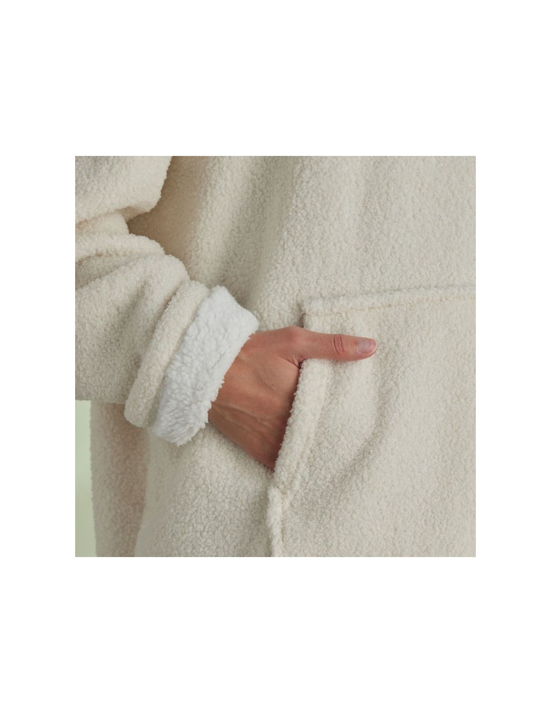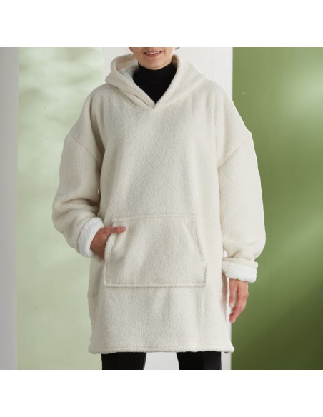 Sweat plaid bouclette Matcha en coloris beige crème, taille unique pour adulte. Doux, chaud et confortable grâce à sa texture bouclette et sa doublure sherpa, parfait pour vos moments cocooning à la maison.