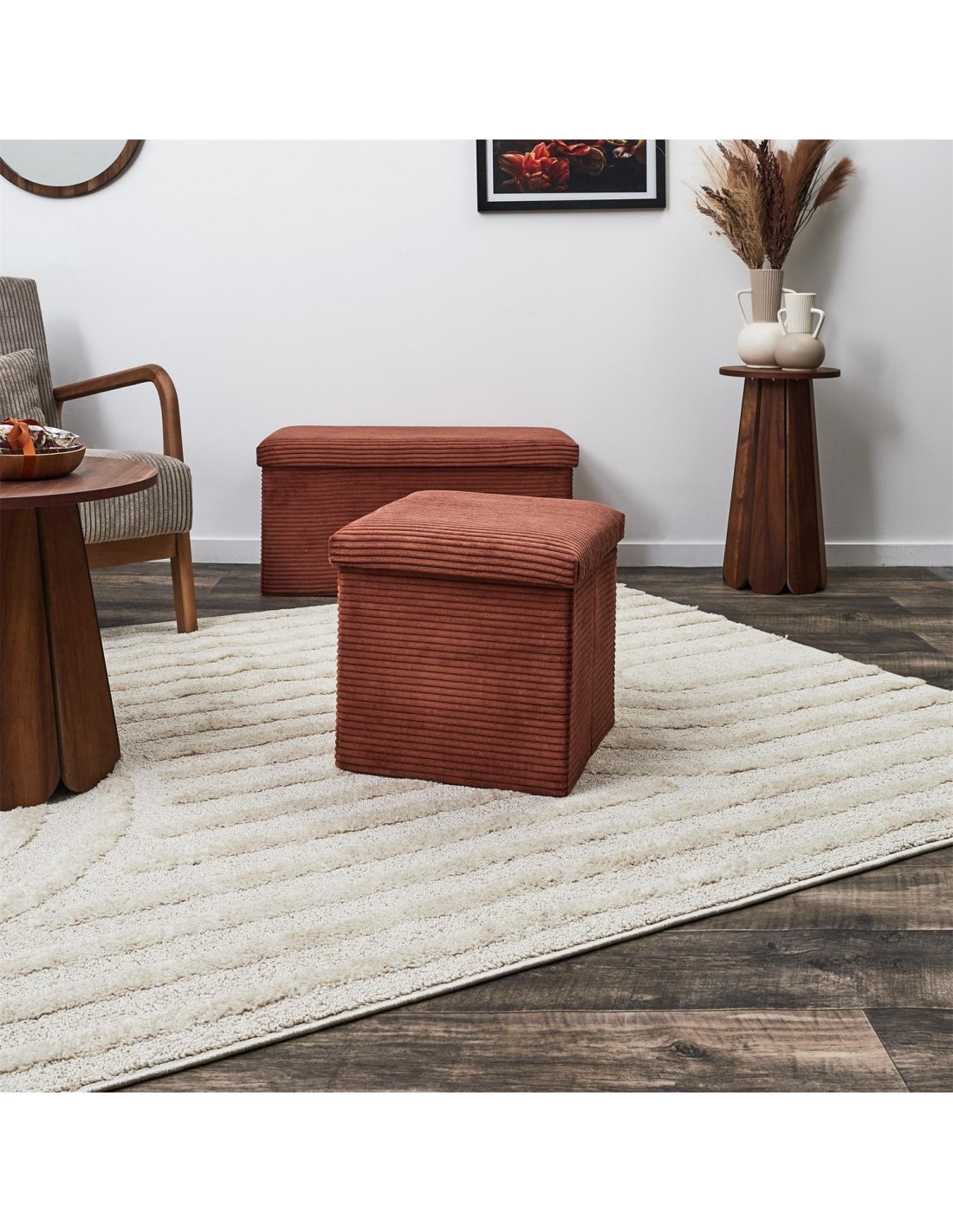 SCOTT - Pouf pliable côtelé terra