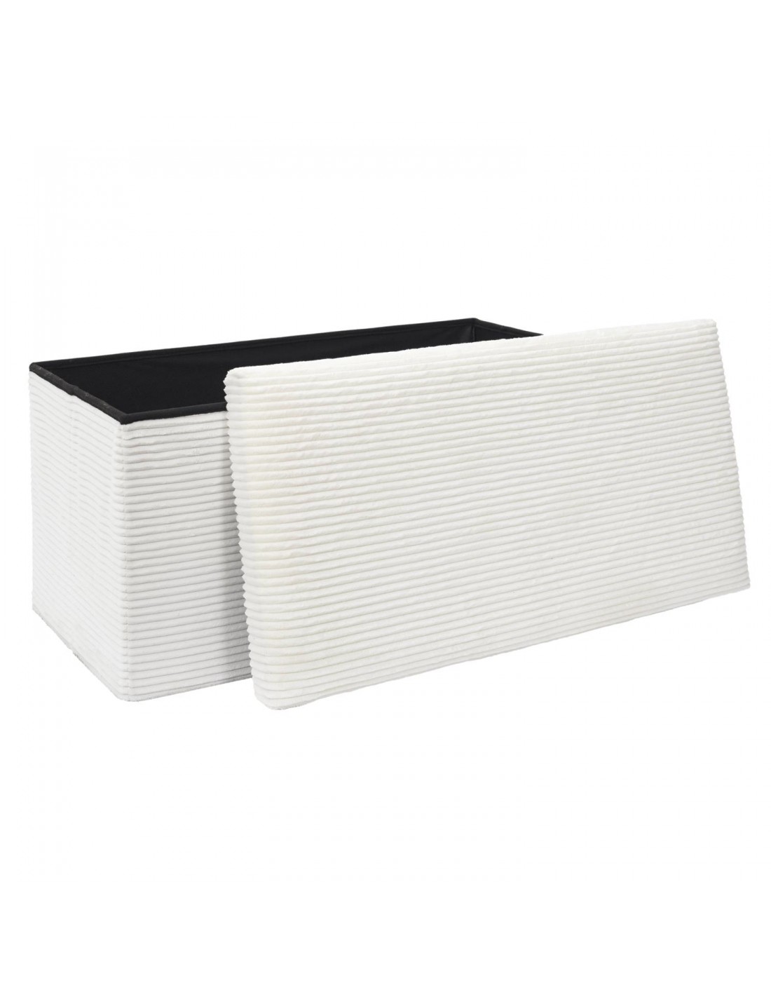 Découvrez ce magnifique banc de rangement qui fait également office de banc ! Le modèle est pliable pour s'adapter avec facilité à vos besoins. Son effet côtelé, en plus d'apporter une dimension cocooning à votre intérieur, il ravira les aficionados de douceur !