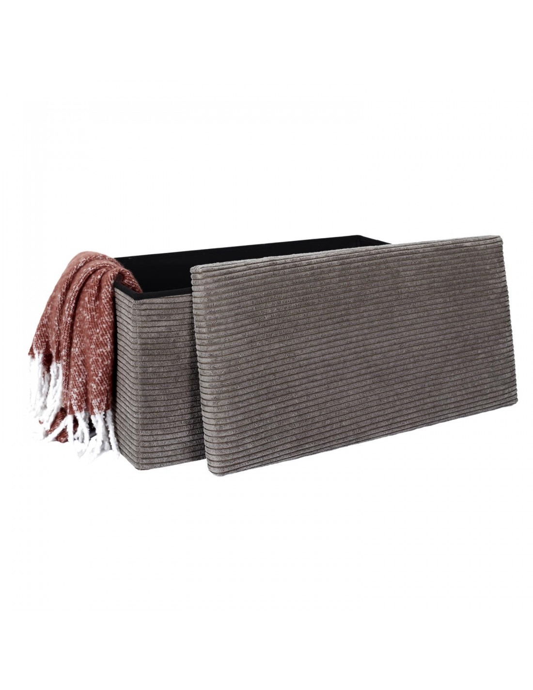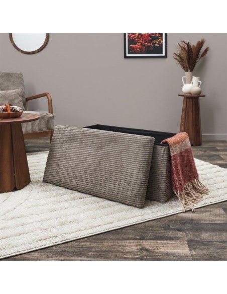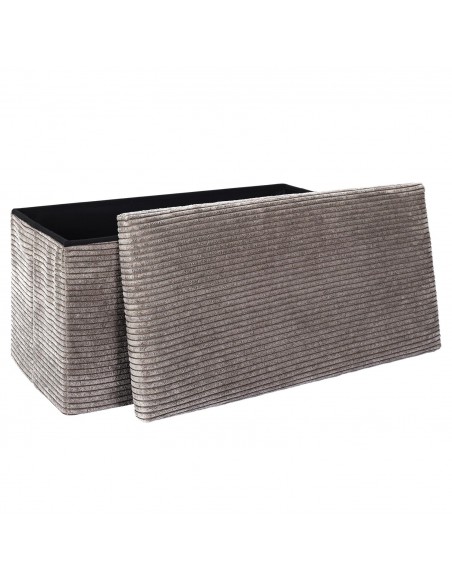 Découvrez ce magnifique banc de rangement qui fait également office de banc ! Le modèle est pliable pour s'adapter avec facilité à vos besoins. Son effet côtelé, en plus d'apporter une dimension cocooning à votre intérieur, il ravira les aficionados de douceur !