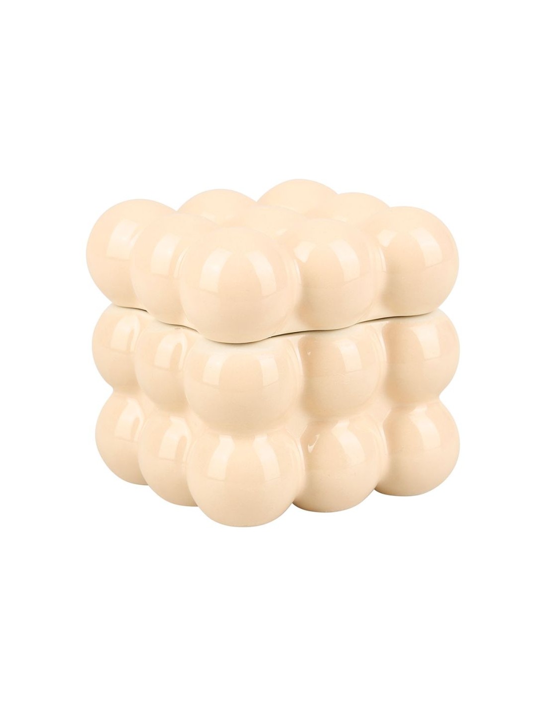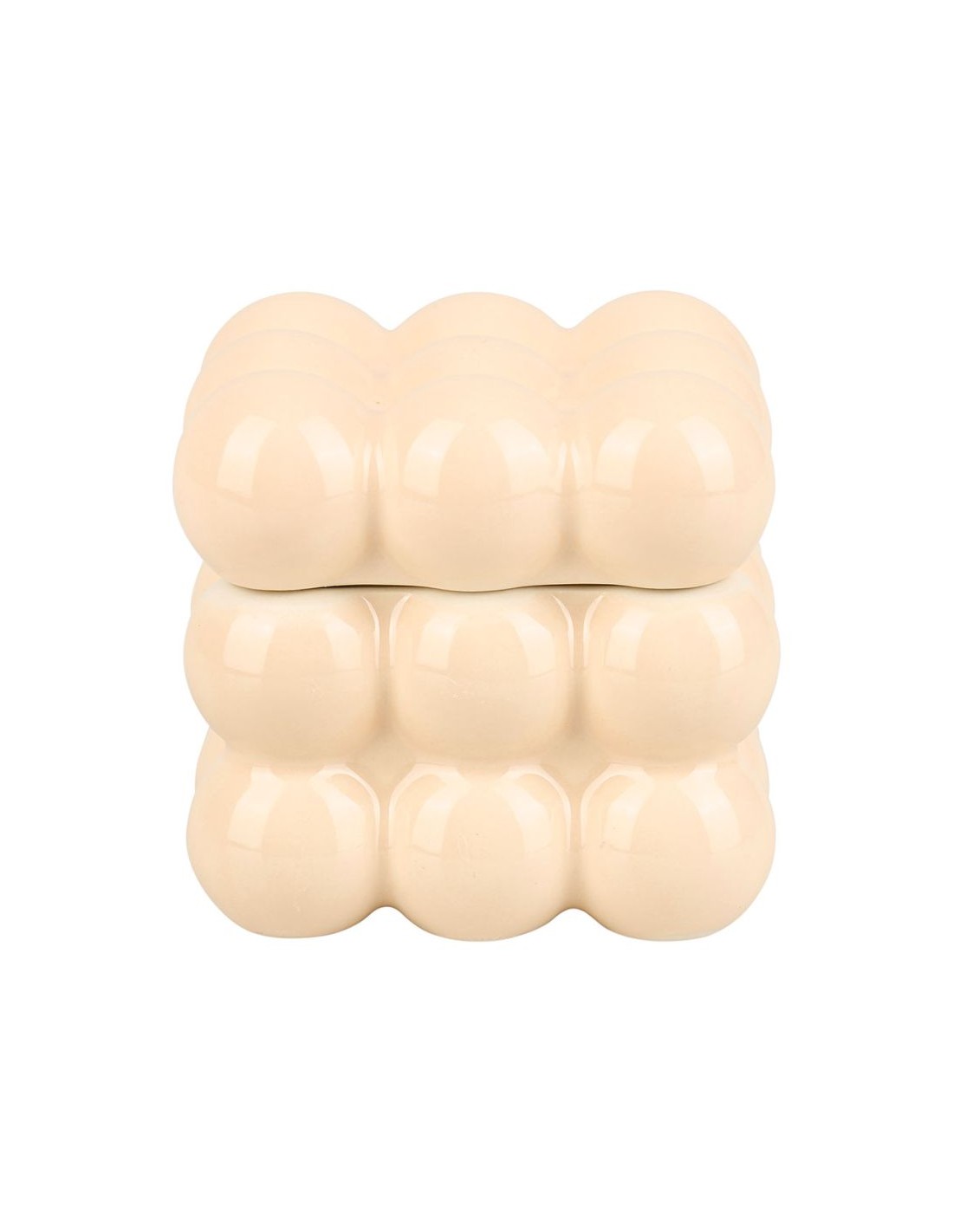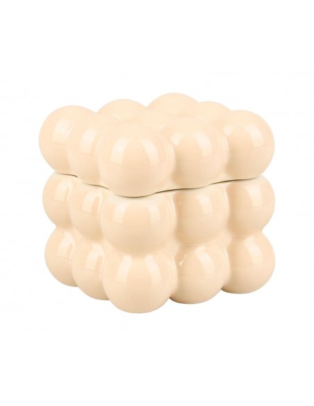 Boîte décorative en céramique crème au design « bubble ». Sa forme originale à reliefs arrondis apporte une touche moderne et tendance à votre décoration. Parfaite pour ranger vos bijoux, petits objets ou simplement décorer.