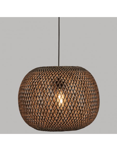 Avec un tressage en bambou régulier artisanal créant un quadrillage en losange, cette suspension apporte du caractère à votre pièce.