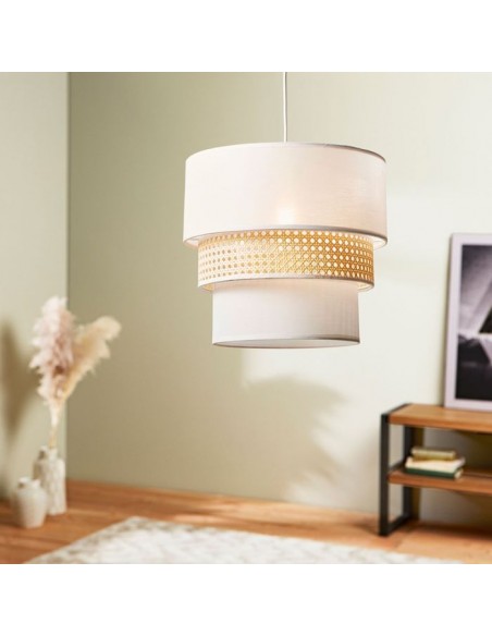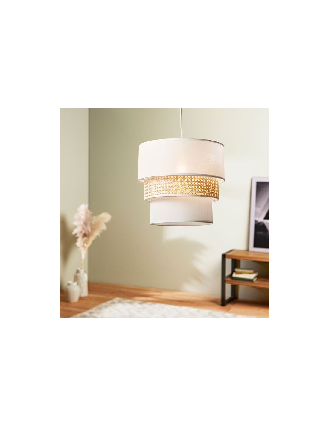 Découvrez cette très jolie suspension ronde gigogne en cannage blanc de 35 cm de diamètre dans un style naturel très réussi.