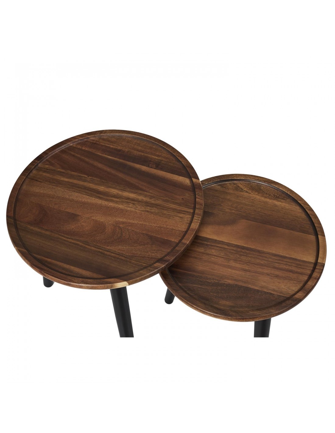 Modulez l'espace dans votre intérieur en fonction du nombre de convives en adoptant ce duo de tables gigognes. Votre salon deviendra irrésistible avec ce lot de 2 tables gigognes rondes en bois d'acacia ! Donnez un côté cocooning à votre intérieur !