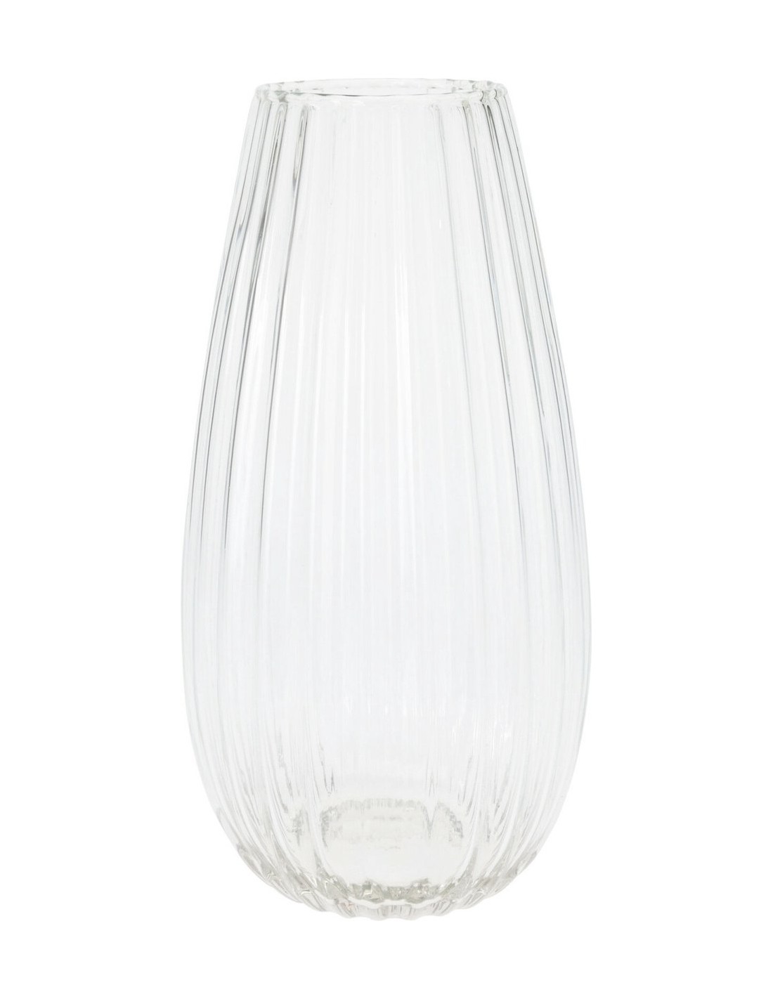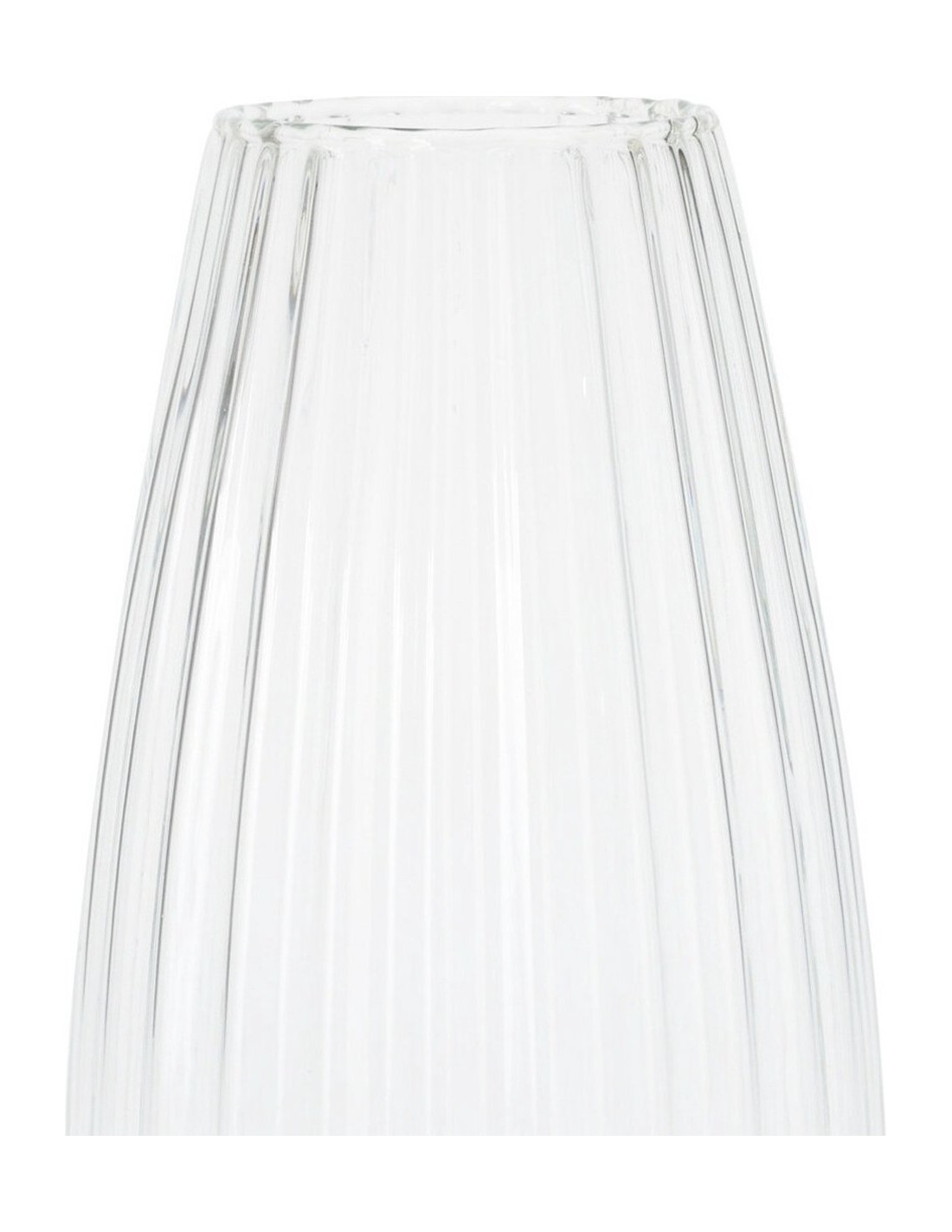 Apportez une touche de raffinement à votre intérieur avec ce magnifique vase en verre transparent de 30 cm. Son design épuré est rehaussé par un délicat relief rayé qui capte la lumière et crée de subtils jeux d’ombres, pour une décoration à la fois moderne et intemporelle.